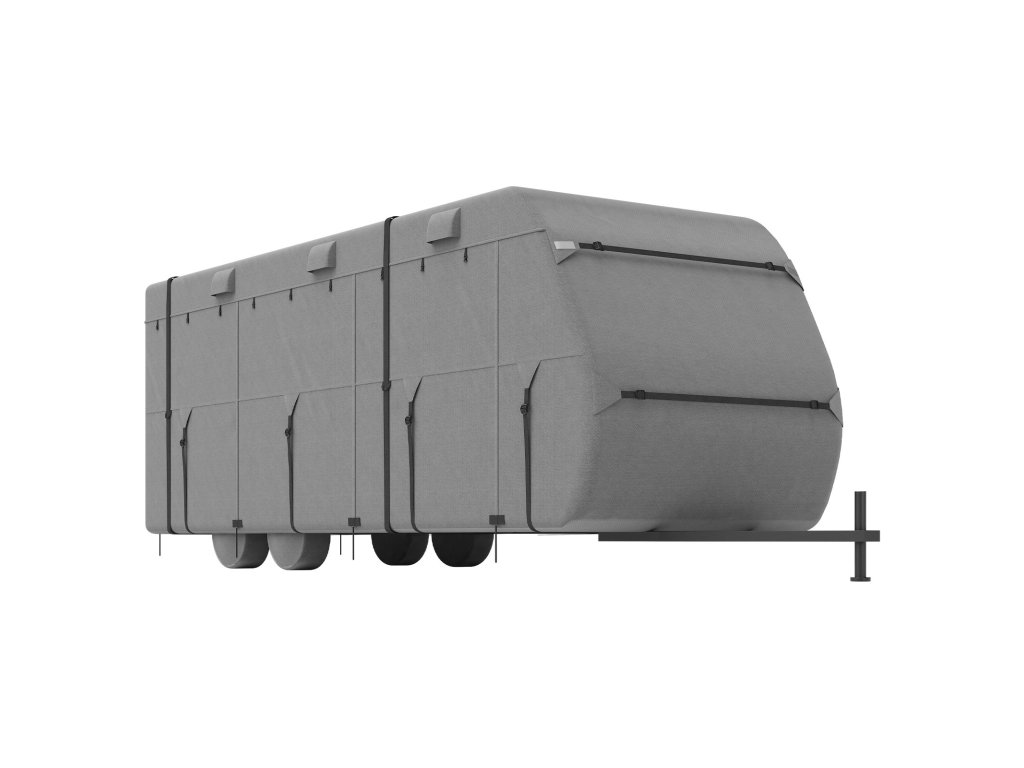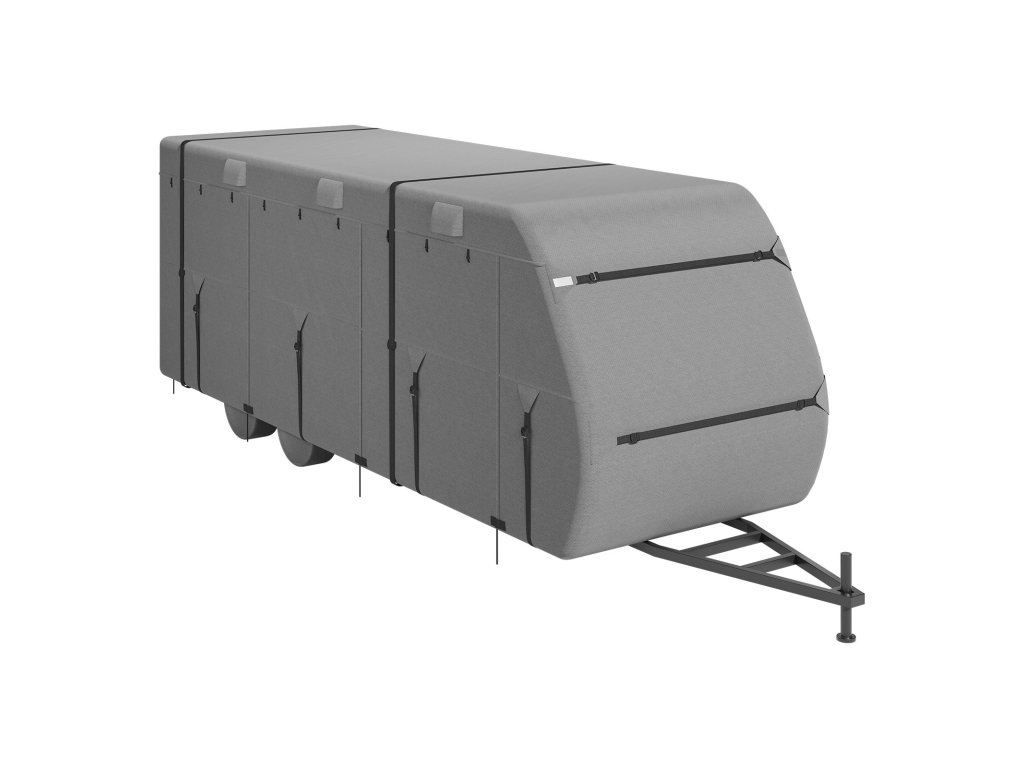 Lakókocsihuzatunk masszív, 4 rétegű teteje és 3 rétegű oldala tartós, nem szőtt anyagból készült, vízálló és napvédelmet nyújtó anyagból készült. Úgy terveztük, hogy ellenálljon a különböző időjárási kihívásoknak.