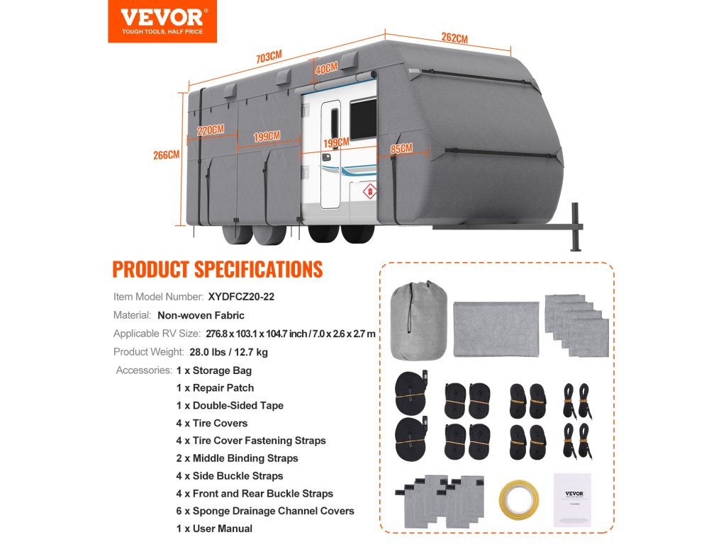 Az A osztályú lakókocsik fedelét gondosan úgy terveztük, hogy illeszkedjen a 20'-22'' lakóautókhoz, és biztosítsa a végső védelmet. Kérjük, a megfelelő felszereléshez győződjön meg arról, hogy lakóautója méretei pontosak. Különböző lakóautófedél méreteket is kínálunk, hogy megfeleljen az Ön egyedi igényeinek.