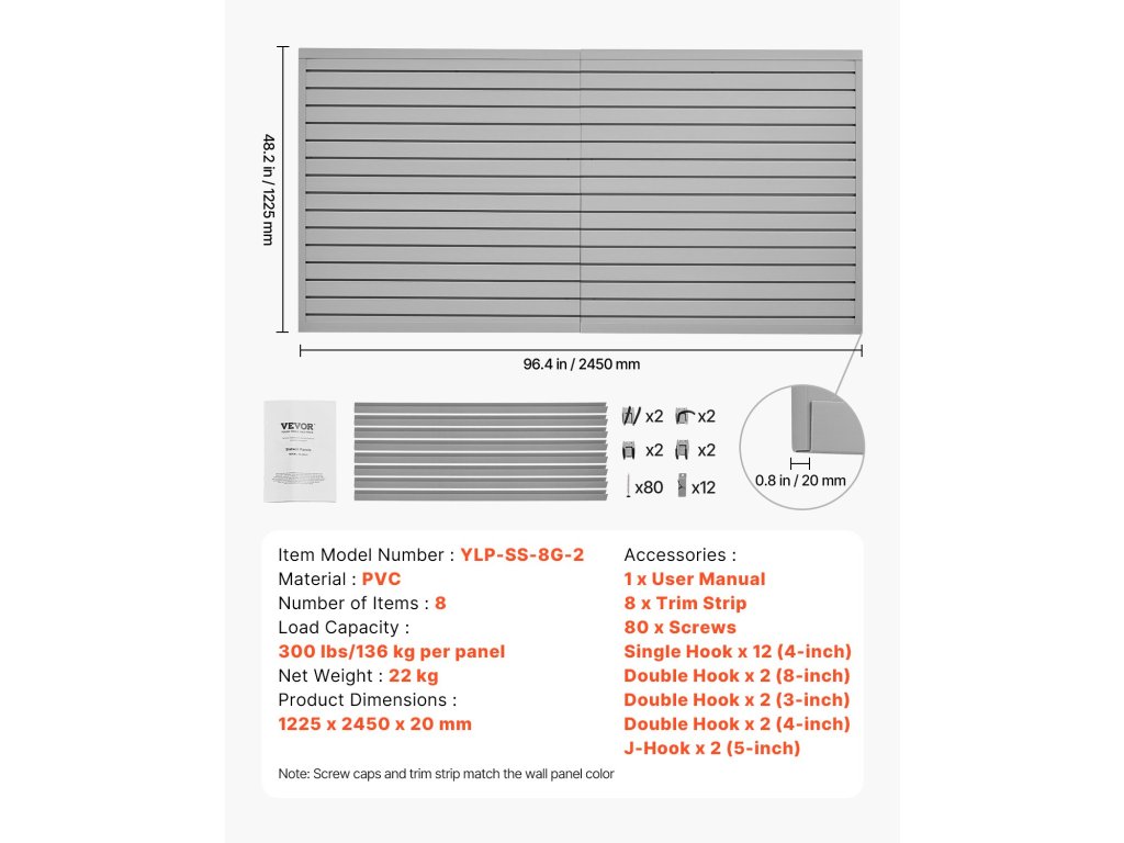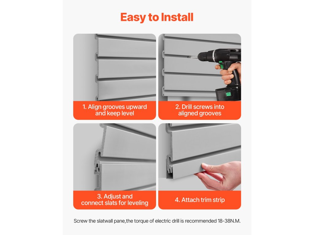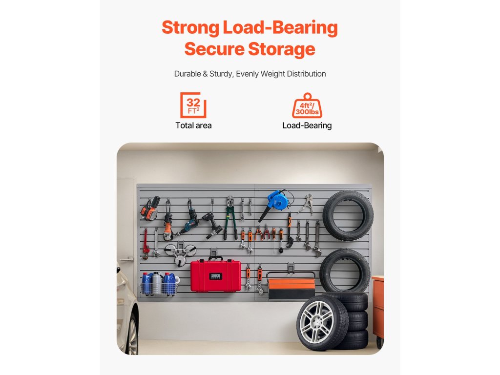 A 3 hüvelyk széles résszel ellátott fali panel kialakítása kompatibilis az univerzális kampókkal, konzolokkal, polcokkal és egyéb tároló kiegészítőkkel, így könnyen hozzáadhatók vagy eltávolíthatók a nagyméretű szerszámok és a kis alkatrészek.