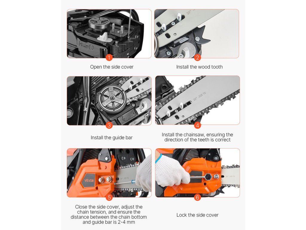 V: A lánc ötvözött acélból készült, összesen 76 láncszemmel rendelkezik, és a lánctávolság 0,325 hüvelyk.