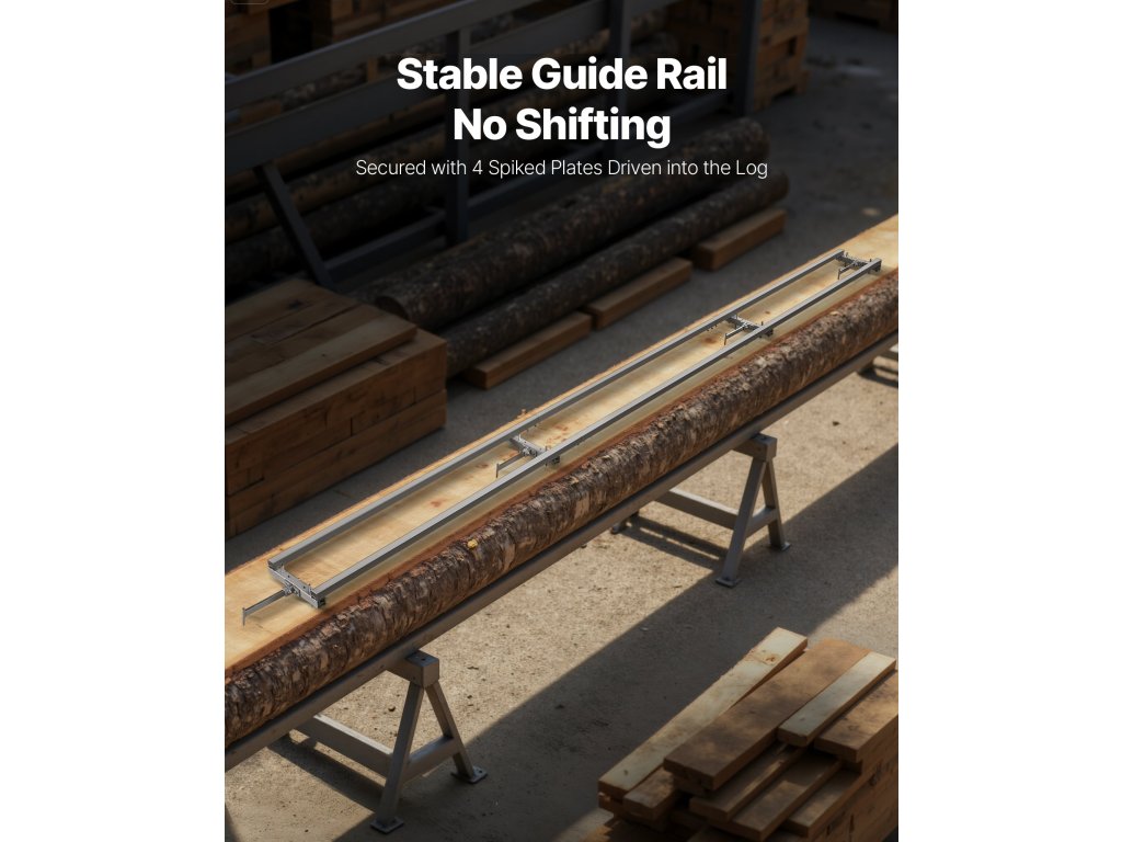 A sínvágó vezető rendszere könnyen alkalmazkodik a különböző rönkméretekhez, gyorsan rögzíti a rönköt a helyén, és minden alkalommal pontos és sima vízszintes vágást biztosít.