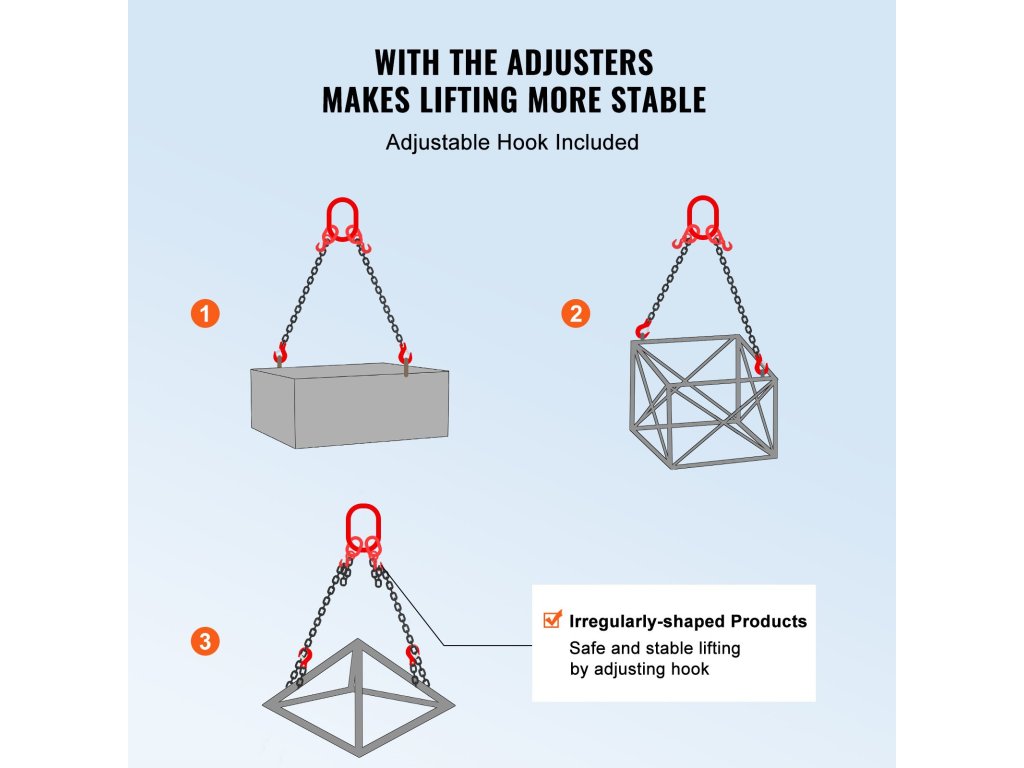 A felfüggesztési lánc jól megtervezett részletei kielégíthetik a különböző követelményeket a tárgyak emelése során, és segíthetnek mindenféle probléma megoldásában.