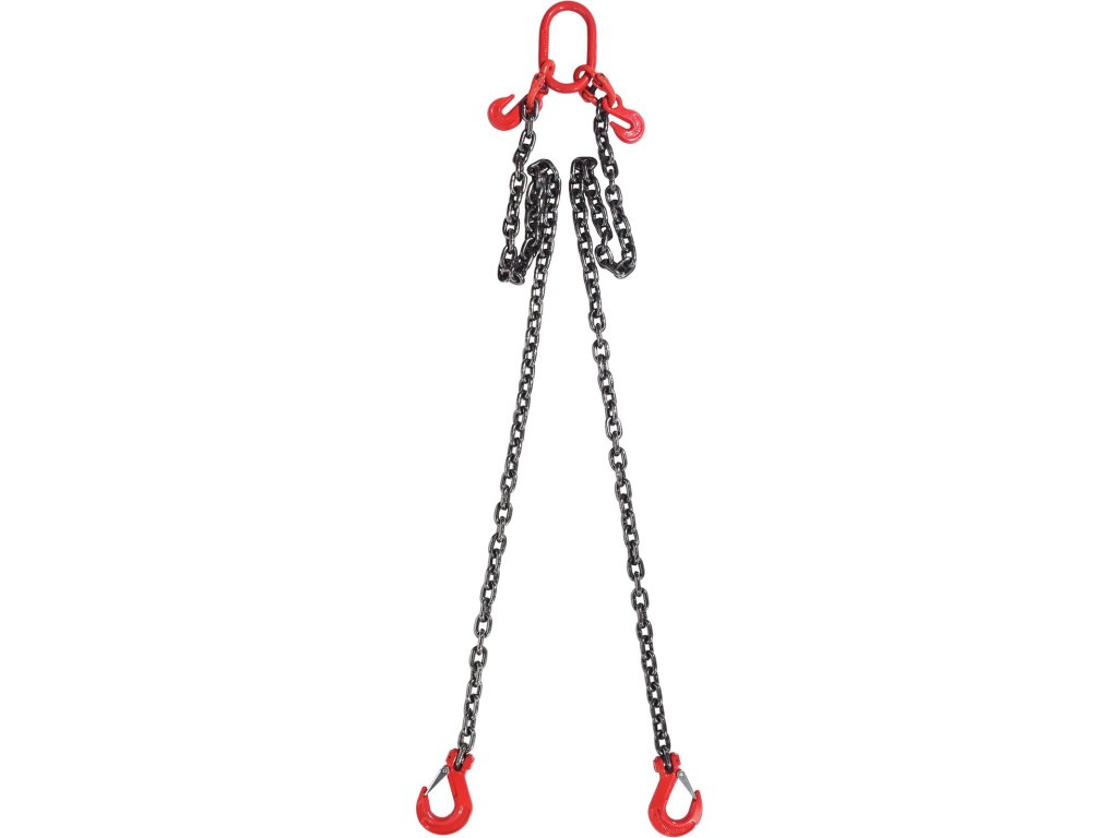Ez az emelőlánc rugós nyelvvel van ellátva a tárgyak biztonságos emelése érdekében. A lánc hossza könnyen beállítható a különböző tömegű súlyokhoz.