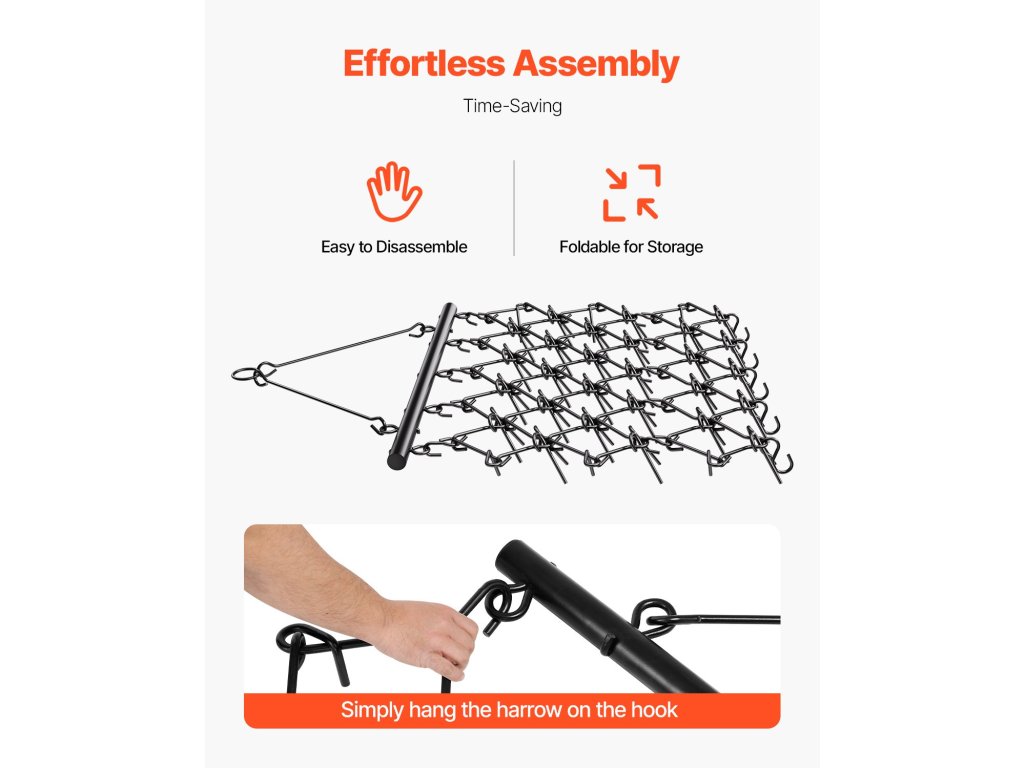 Húzó gereblyéink gyors felépítésűek, így további előkészítési idő nélkül azonnal elkezdheti a munkát. Használat után könnyen kibontható és összehajtható a kompakt tárolás érdekében, értékes helyet takarítva meg.