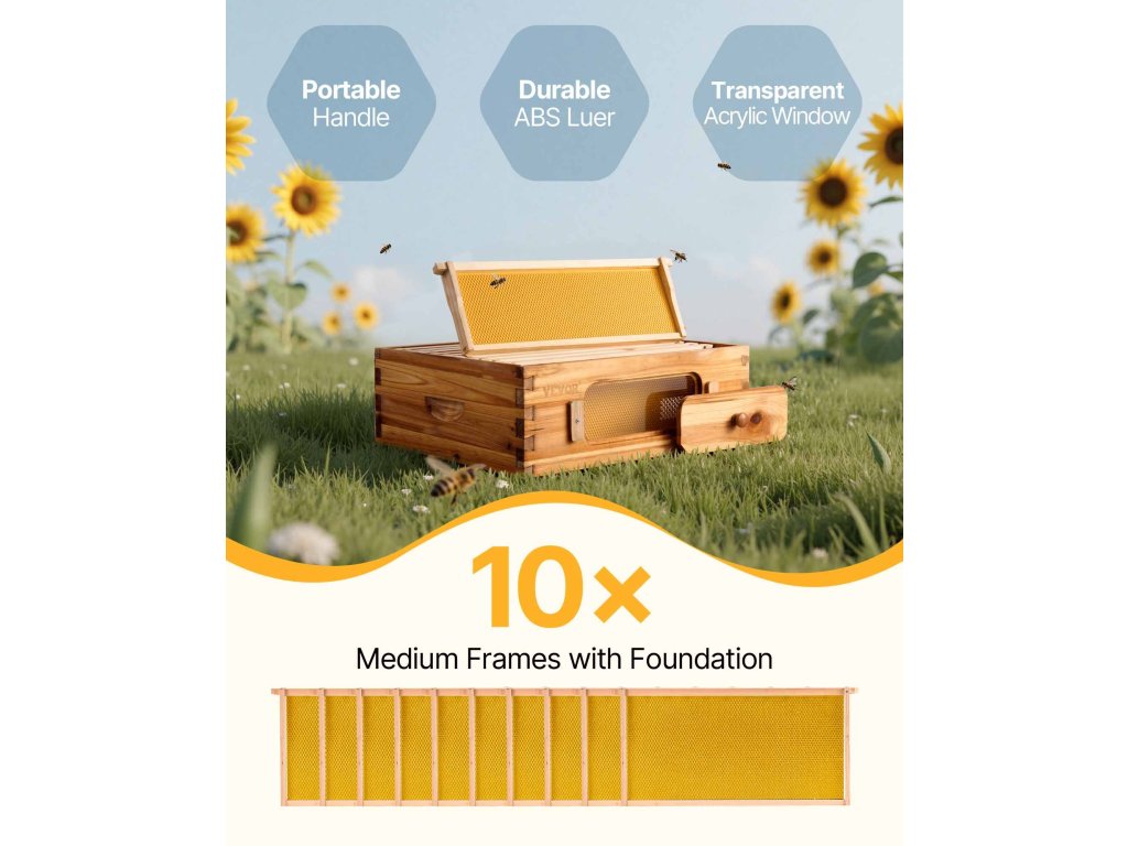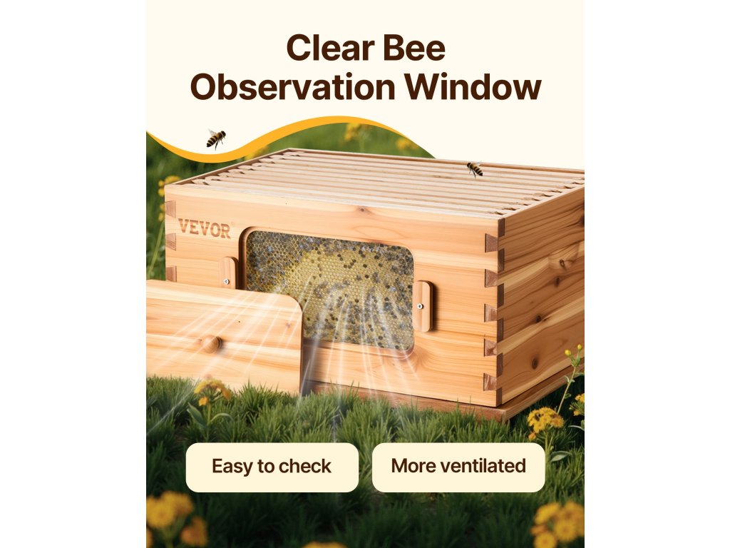 Speciálisan tervezett, átlátszó akril panelekkel vannak ellátva, amelyek lehetővé teszik a méhek tevékenységének könnyű nyomon követését, míg a szellőzőnyílások biztosítják a kaptárban a megfelelő légáramlást. Télen az ablakok bezárhatók, hogy a kaptárat melegen tartsák, és egészséges környezetet biztosítsanak a méhek számára.
