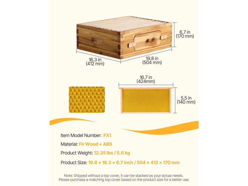 Ez a kaptár vastag cédrusfából készült, galambfarok felhasználásával, és átlátszó ablakokkal rendelkezik a méhek számára a szellőzés és a könnyű megfigyelés érdekében. A tágas kialakítás biztosítja a méhek egészségét és a nagyobb terméshozamot. Tökéletes választás méhészeti igényeihez.