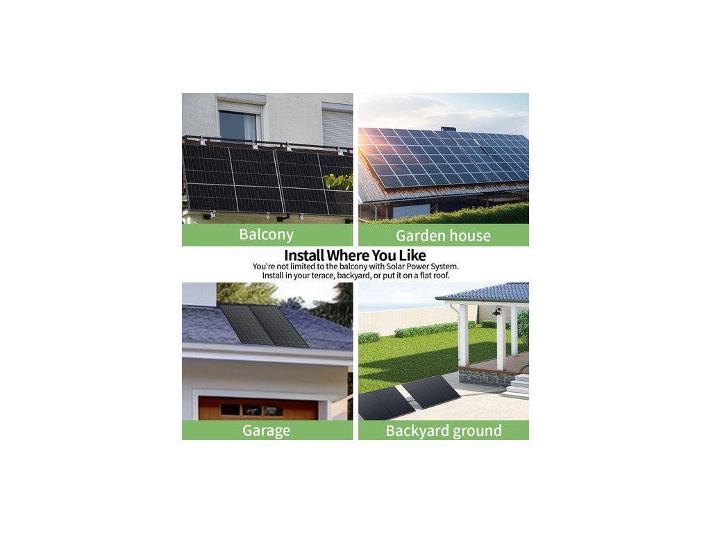 Ez a 180W * 4 = 720W-os napelem mindössze 15 kg súlyú, és tartós rozsdamentes acélból készült tartóval és kampóval rendelkezik, amely gyorsan telepíthető az erkélyekre vagy telepíthető a hátsó udvarokban vagy szabadtéri kempingezéskor