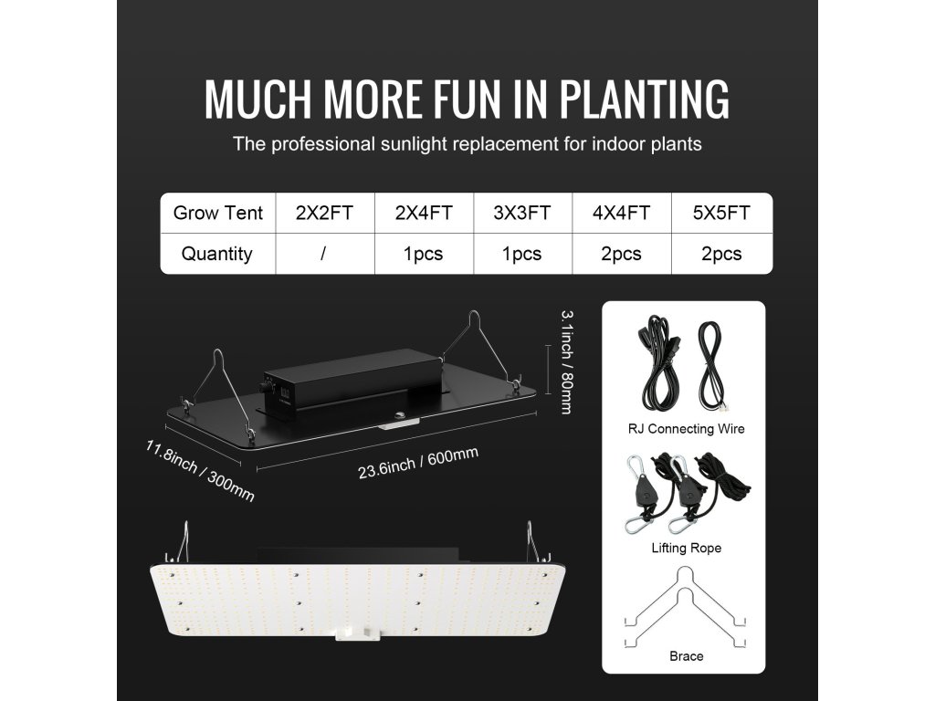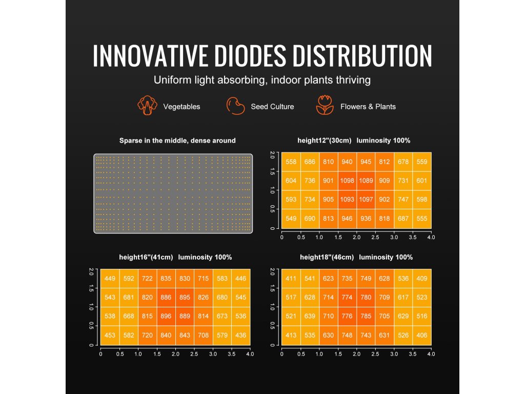 | PPFD | ≥1100umol/m2s (0,6*0,6) |