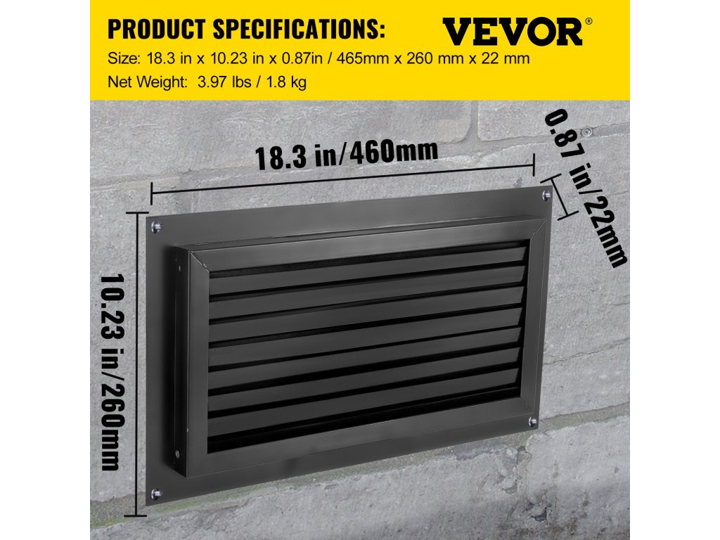 Záplavový ventilátor VEVOR, ktorý je ideálny pre projekty na zlepšenie bývania a ochranu majetku, poskytuje funkčnosť aj štýl. Vďaka vysokokvalitným materiálom a spoľahlivému dizajnu je nevyhnutným doplnkom každého projektu rekonštrukcie alebo výstavby. Či už ide o zabezpečenie novostavby alebo modernizáciu existujúcich priestorov, tento vetrací otvor zaručuje vynikajúcu ochranu a zároveň zvyšuje celkovú hodnotu vašej nehnuteľnosti. Je to spoľahlivá a všestranná voľba, ktorá je nevyhnutná na zachovanie bezpečnosti a integrity vášho domu.