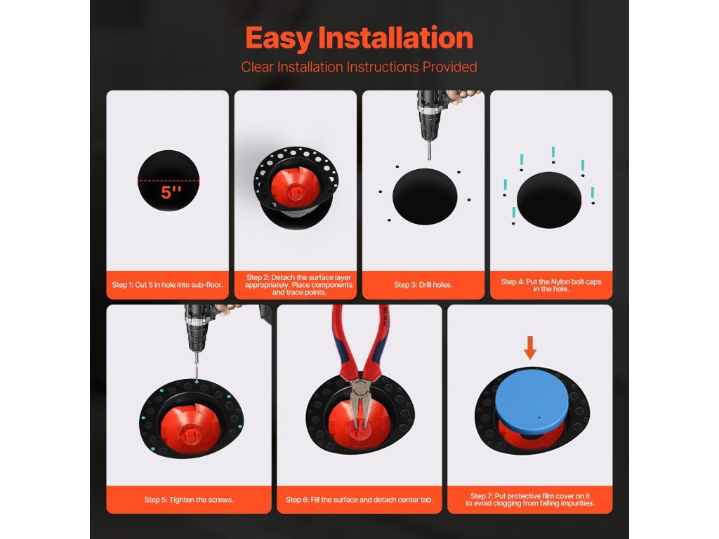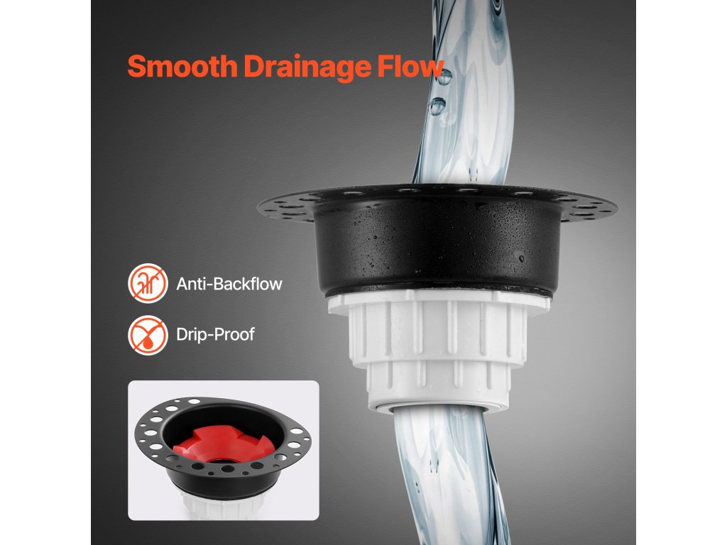 A nagy átmérőjű durva kádkészlet lehetővé teszi a víz gyors áramlását, a polietilén tömítés pedig biztonságos tömítést hoz létre, amely megakadályozza a szagokat és megakadályozza a szivárgást.