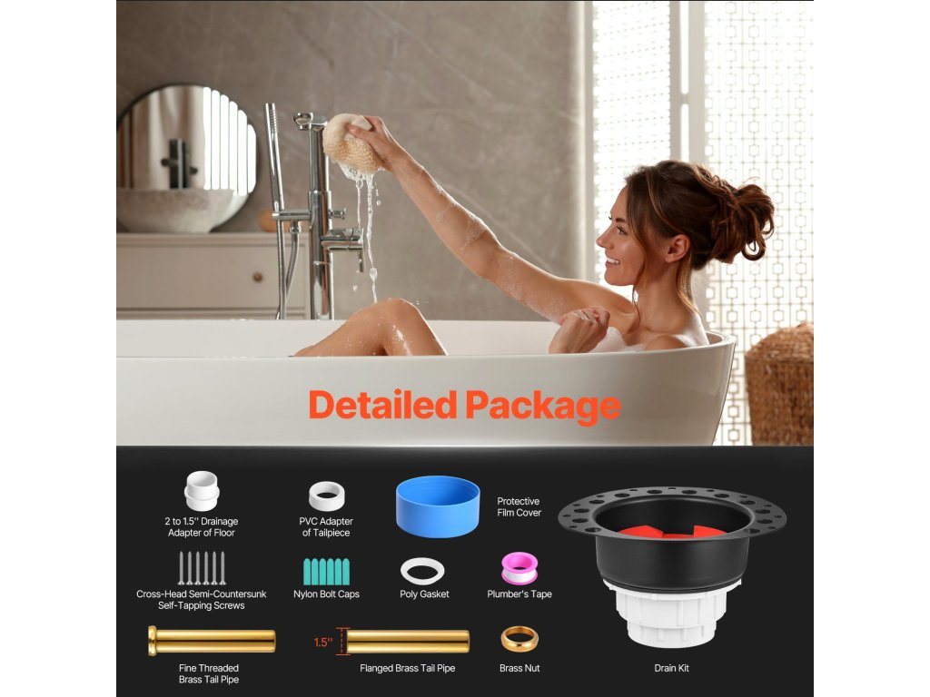 Ez az önálló kádlefolyó készlet mindent tartalmaz, amire szüksége van, beleértve a lefolyószettet, polietilén tömítést, csavarokat/csavarokat, vízvezetékszalagot, sárgaréz anyát, védőfóliát, sárgaréz finom menetes végcsövet, sárgaréz karimás végcsövet és egyebeket. A mellékelt használati utasításnak köszönhetően a beszerelés gyors és egyszerű.