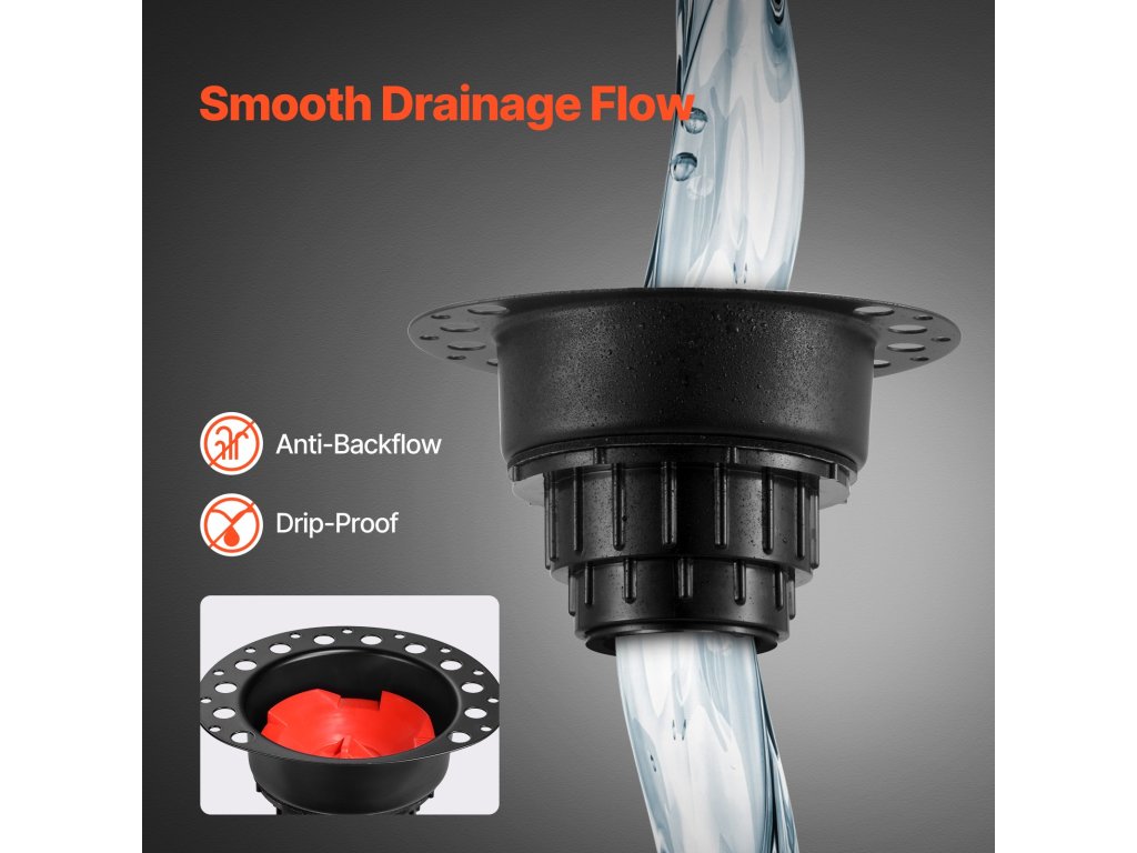 A nagy átmérőjű durva kádkészlet lehetővé teszi a víz gyors áramlását, a polietilén tömítés pedig biztonságos tömítést hoz létre, amely megakadályozza a szagokat és megakadályozza a szivárgást.