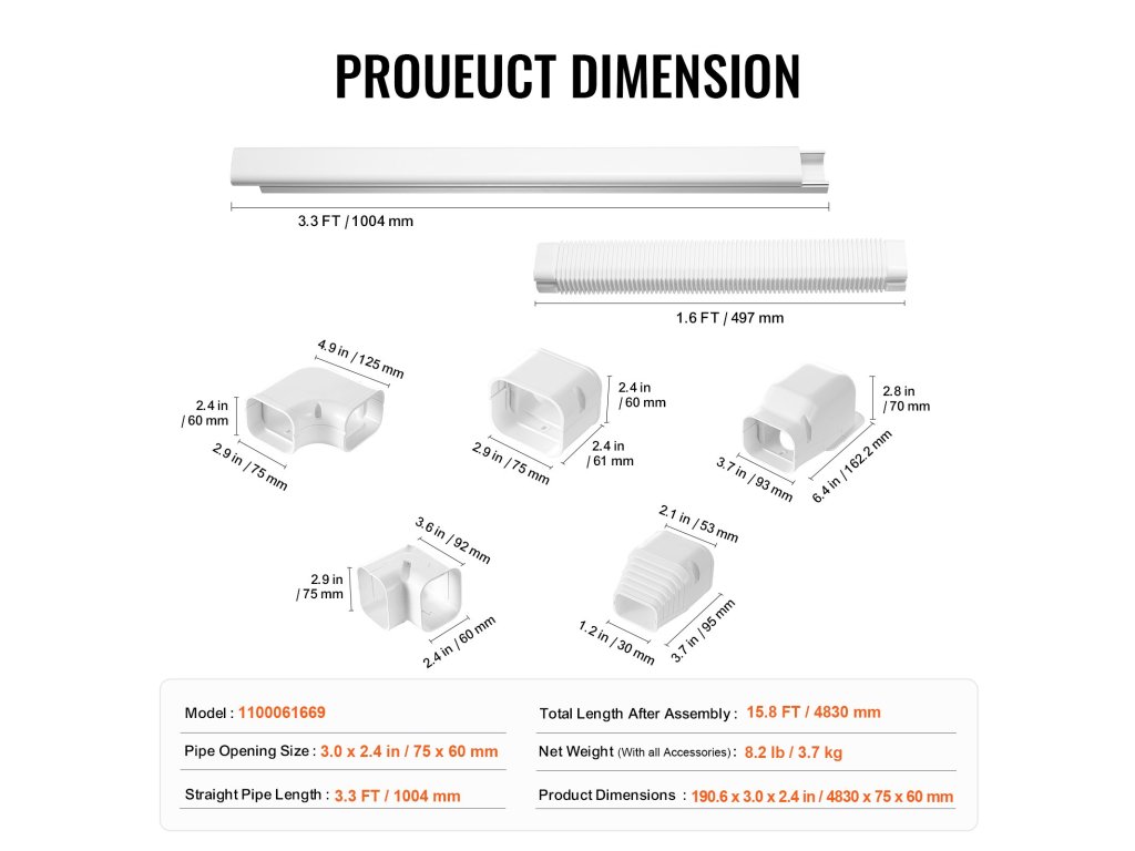 Az osztott klímacsatorna-készlet burkolatának felszerelése egyszerű, és csak néhány lépést igényel. A vásárlás és a beszerelés előtt ajánlott a távolságok kimérése és egyéb előkészületek elvégzése a zökkenőmentes beszerelés érdekében.