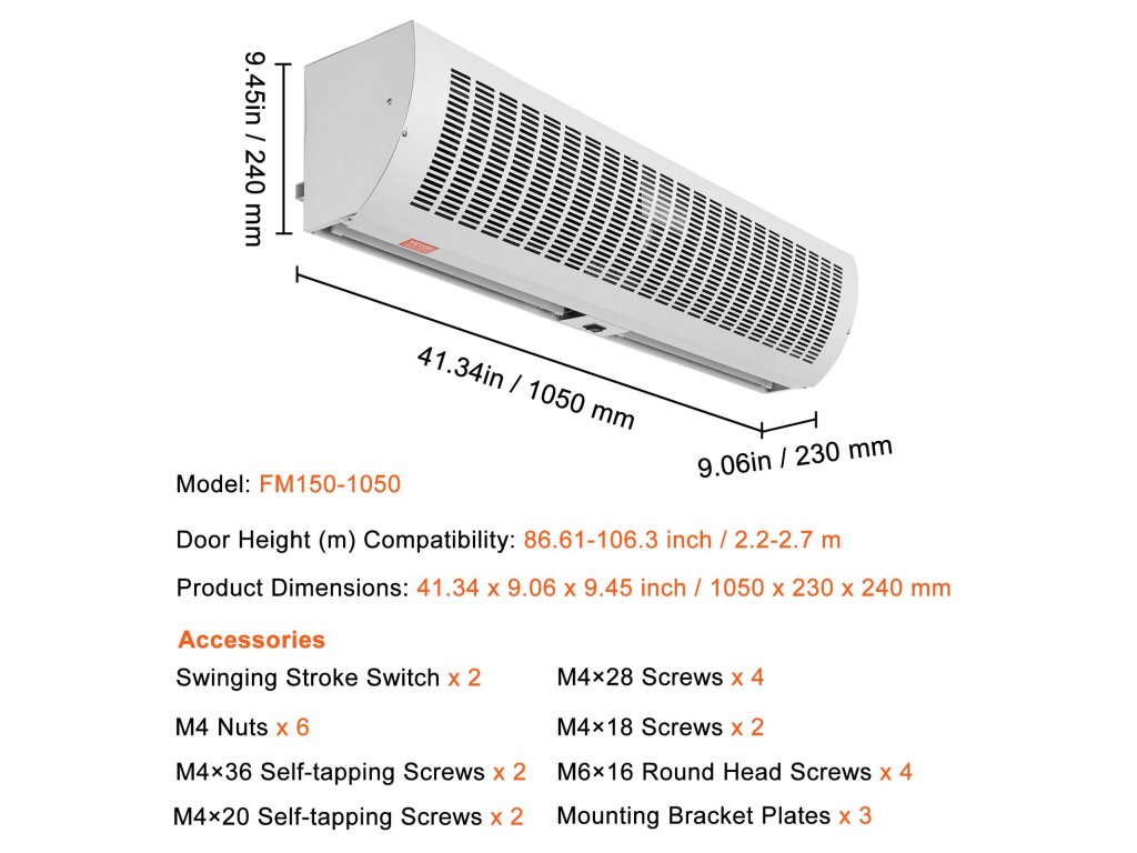 Légfüggöny 1,1 m, 2292 m³/h, 2 sebesség, fali, fűtetlen
