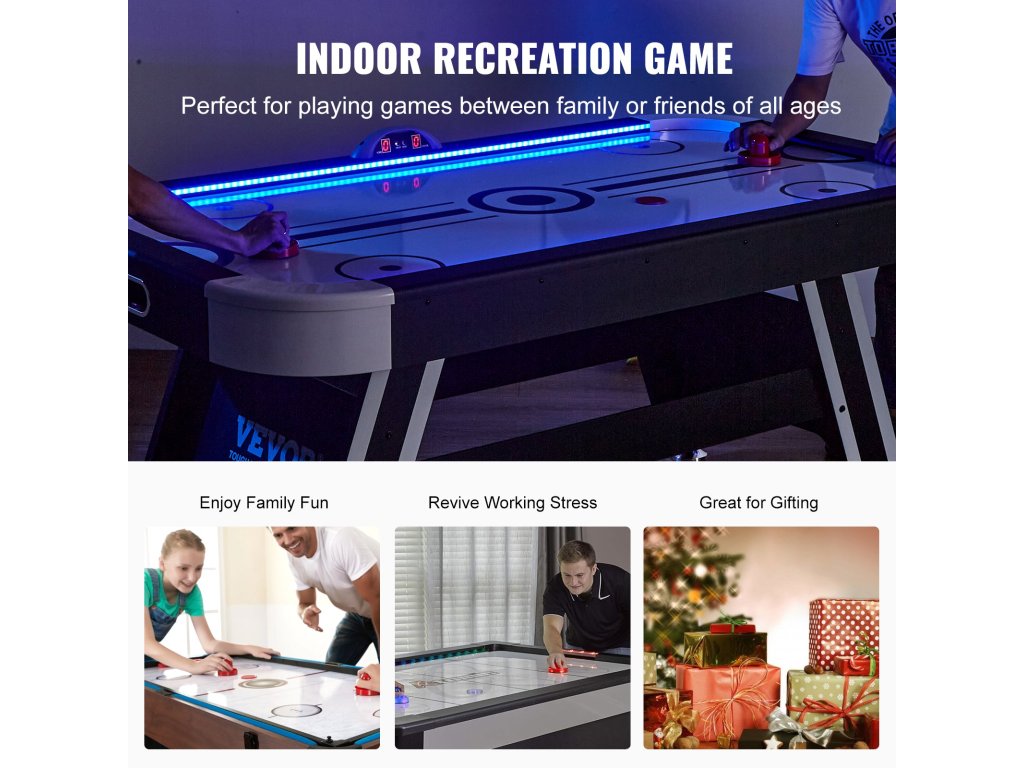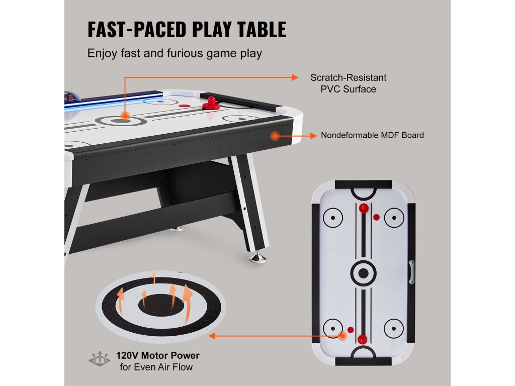 A 120 V-os motorral működtetett léghokiasztal folyamatos légáramlást garantál, erős széllökésekkel a játék autentikus érzése érdekében. Élvezze a játékot, amely minden fordulóban a sebességet és az izgalmat ötvözi.