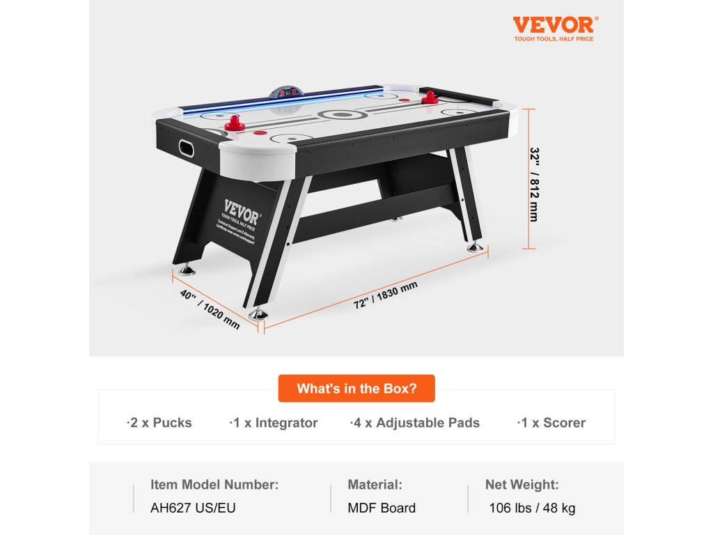 A beltéri jégkorong játékasztal állítható lábakkal van felszerelve, amelyek egyenletes játékfelületet biztosítanak a tisztességes mérkőzéshez. A lekerekített védőélek beépítésre kerültek, hogy megelőzzék az esetleges sérüléseket az intenzív játékok során.