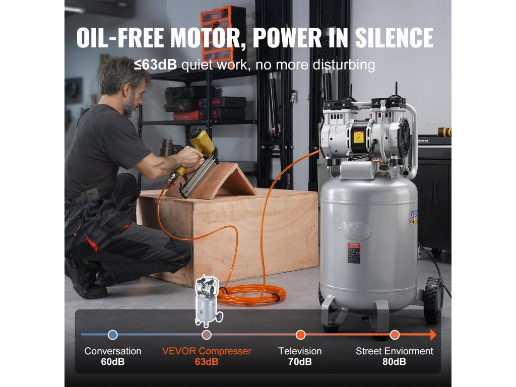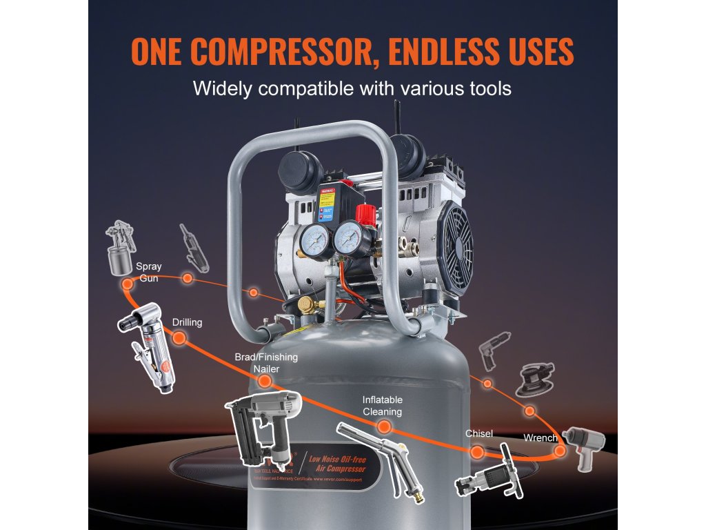Fedezze fel a végső hatékonyságot a VEVOR 13 gallonos légkompresszorral. Nagy teljesítményű 2 LE-s motorral, 4 SCFM@90 PSI légszállítással és sokoldalú felhasználással erőteljes és hatékony légsűrítést biztosít a különböző feladatok gyors elvégzéséhez, ideális a gumiabroncsok felfújásához, autójavításhoz, fa szögeléséhez.
