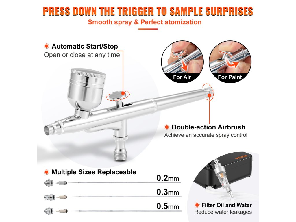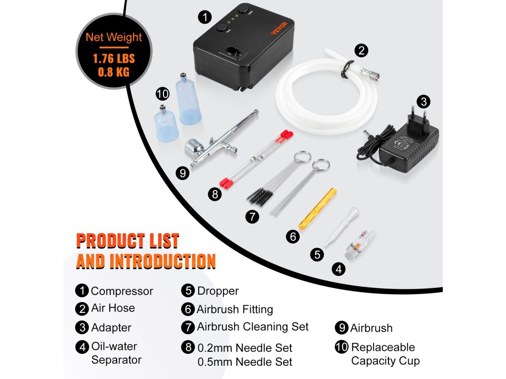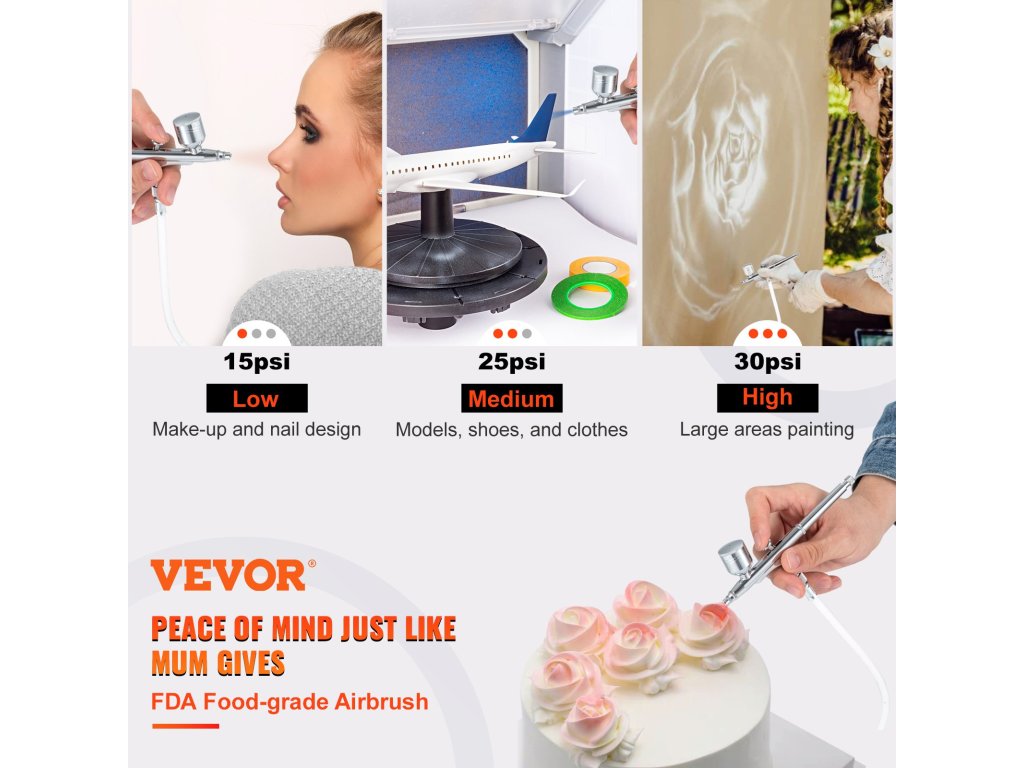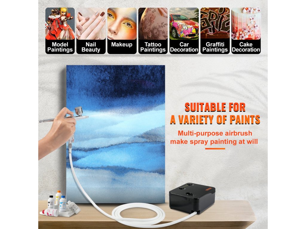 Ez a kényelmes folyadékszabályozó gombbal, állítható szórásképpel és cserélhető karbantartó fúvókával ellátott airbrush készlet könnyen összeszerelhető és használható minden szintű felhasználó számára. Akár kezdők, akár profik, pillanatok alatt elkezdhetnek gyönyörű műalkotásokat készíteni. Az univerzális tisztító készlettel együtt ez a készlet széles körben használható modellfestéshez, kézművességhez, tortadíszítéshez, autóipari grafikához, ideiglenes tetoválásokhoz, képzőművészethez, körömművészethez és még sok máshoz! Jöjjön és alkosson mostantól kezdve állkapcsot lehengerlő remekműveket!