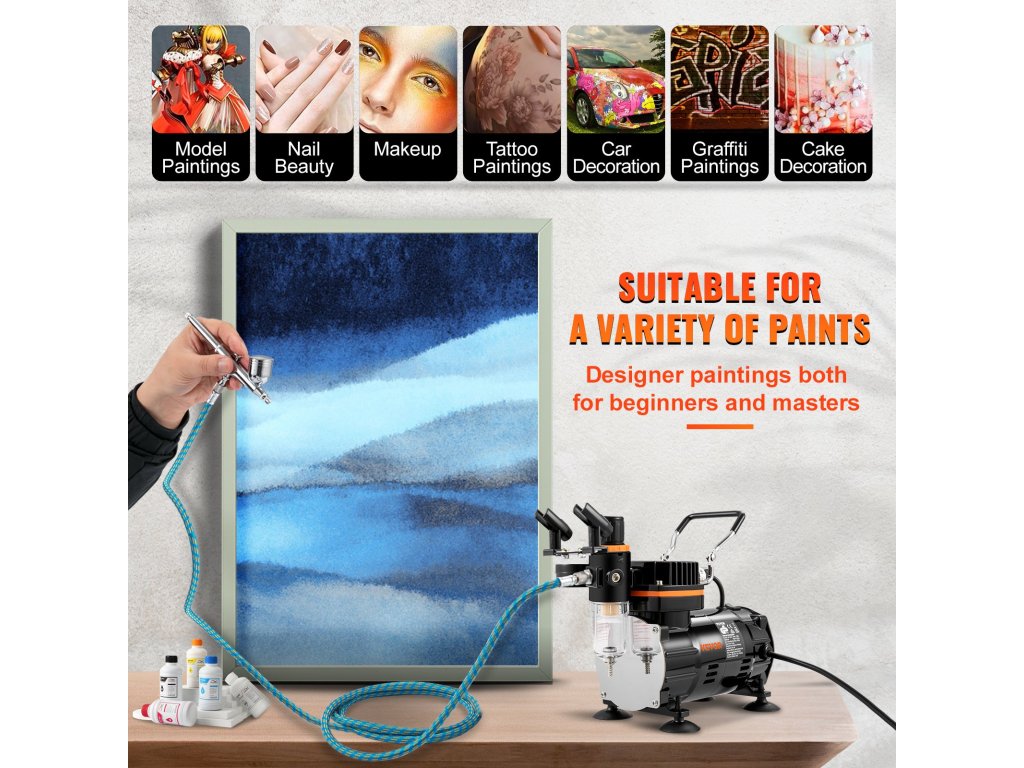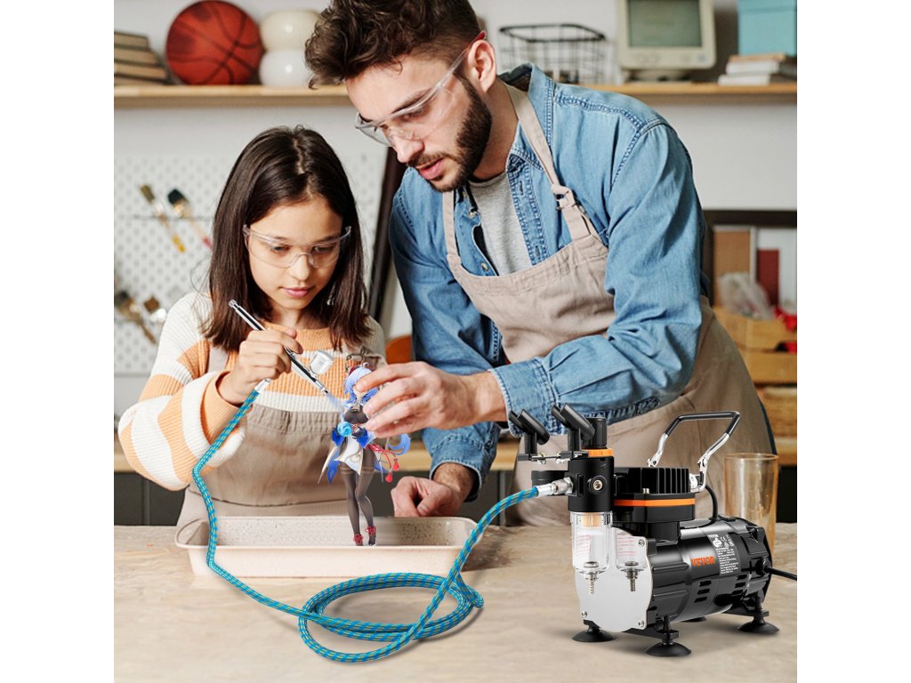 Légpisztoly készlet kompresszorral, kettős működésű gravitációs pisztolyokkal modellekhez