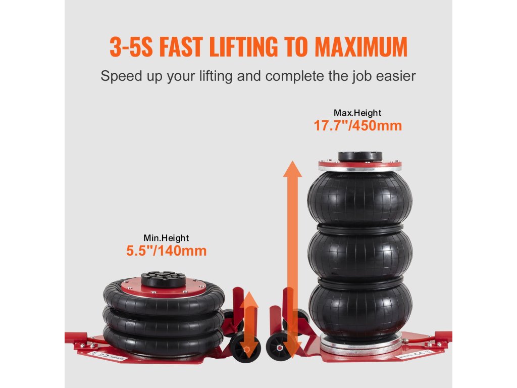Légzsákos emelő 3 tonna/6600 font, 450 mm emelési magasság, 3–5 másodperc