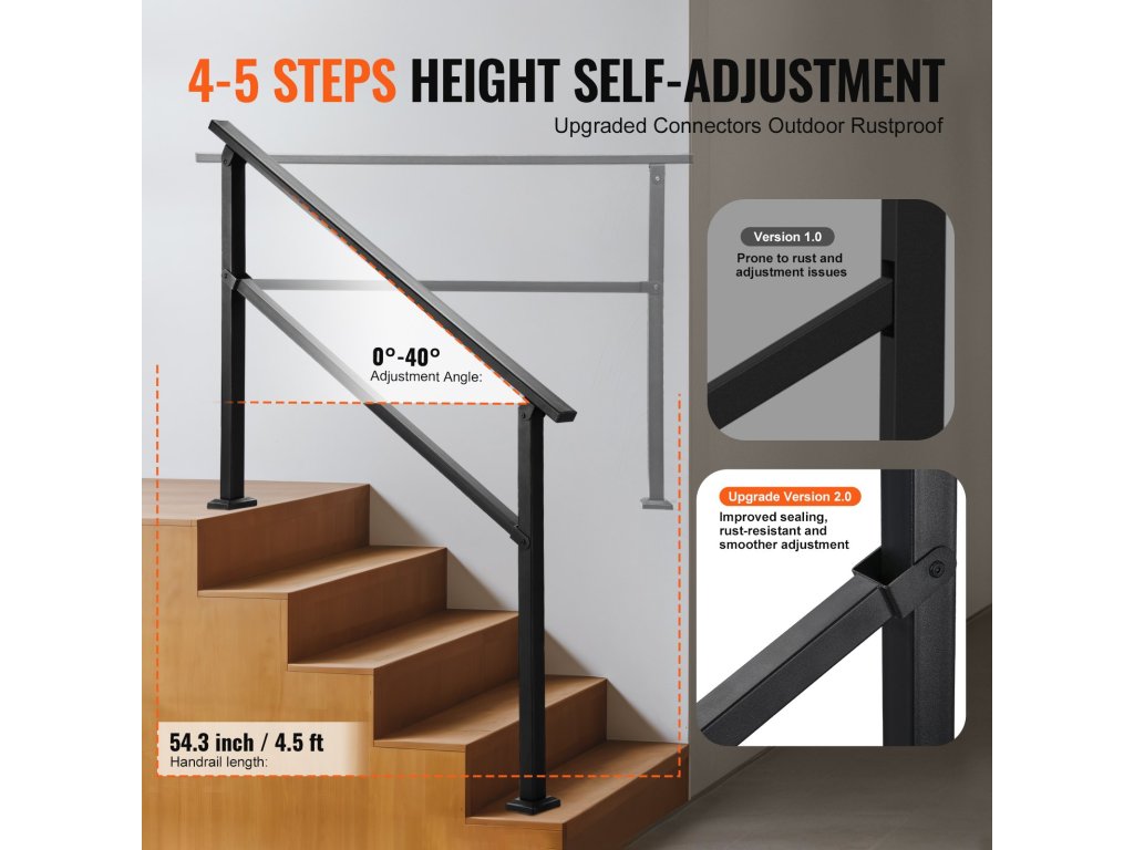 Ez a lépcsőkorlát tartós szénacélból készült, és betonra, fára és más felületekre is felszerelhető. Egyszerű kialakítása biztosítja a könnyű telepítést, és stabil támaszt nyújt az idősek és a terhes nők számára, miközben kényelmes fogást biztosít a további védelem érdekében.