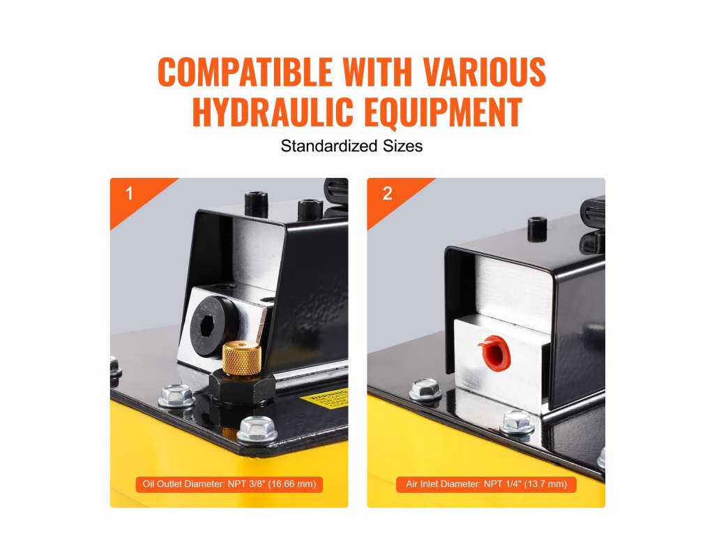 A levegővel működő hidraulikaszivattyú robusztus külső burkolata bajnokként védi a belső alkatrészeket. Ellenáll a nyomásnak, a korróziónak és a kemény körülmények közötti deformációnak. Gyárilag hidraulikaolajjal (No. 13) feltöltve biztosítja a hatékony, biztonságos és tartós hidraulikus működést.