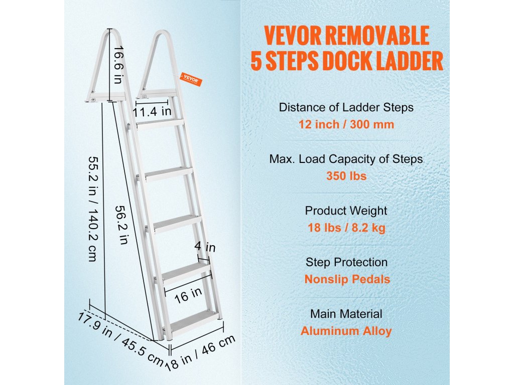 | Typ produktu | VEVOR odnímateľný 5-stupňový dokový rebrík |