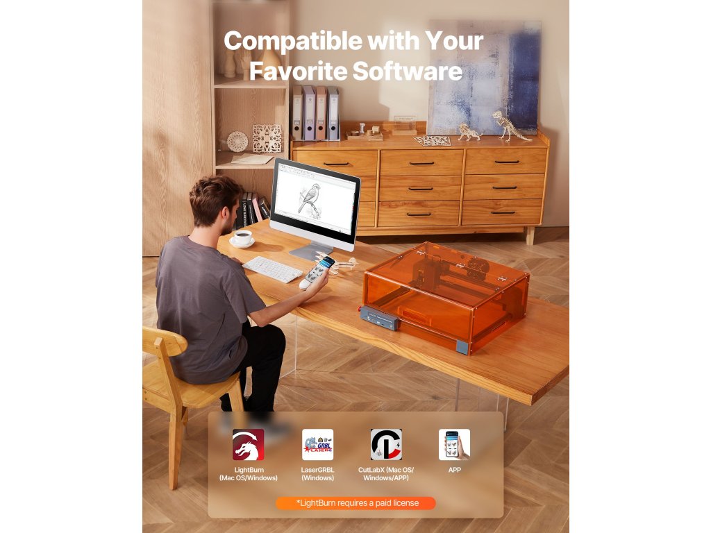 | Kompatibilita so softvérom | LaserGRBL (Windows), LightBurn (Mac OS/Windows, potrebná platená licencia), CutLabX (Mac OS/Windows/APP) |