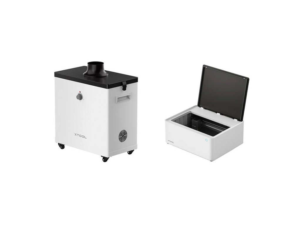 A készletet kiegészíti az xTool füsttisztító, amely fejlett szűrőrendszerének köszönhetően eltávolítja a káros részecskék és szagok 99,97%-át. A háromrétegű szűrő, amely HEPA- és aktív szénszűrőket tartalmaz, optimális munkakörülményeket biztosít, és eltávolítja a levegőben lévő szennyeződéseket a vágás és a gravírozás során. Praktikus kerekei lehetővé teszik, hogy a víztisztítót könnyen oda lehessen mozgatni, ahol éppen szükség van rá.