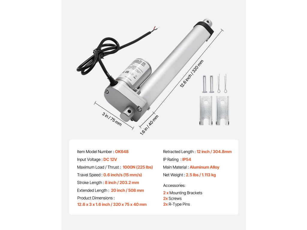 A 225lbs/1000N stabil nyomatékkal, 0,6 in/sec nagy sebességgel, IP54-es védettséggel és csendes működéssel ez a 12V-os lineáris működtető ideális otthoni és egyéb automatizálási alkalmazásokhoz. Hatékony és kényelmes használatot biztosít, jelentősen javítva az Ön általános életminőségét.