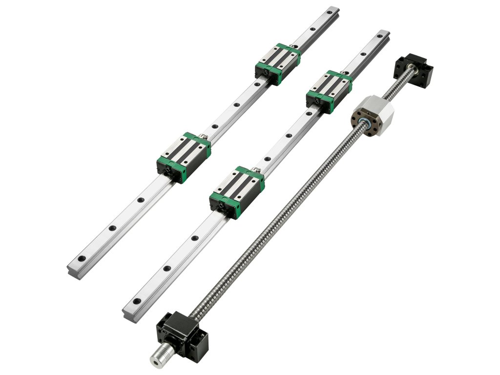 A lineáris vezetőkészlet 2 darab 1000 mm/39,4" hosszú HGR20 síntengelyt, 4 blokkot és egy golyóscsavar-készletet tartalmaz.