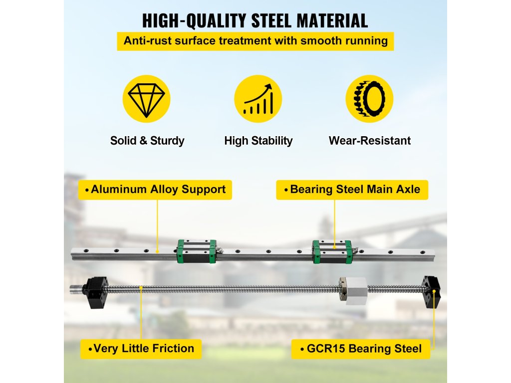 Ez a csapágysín szénacél főtengelyből, GCr15 csapágyazott acél lineáris sínblokkból és alumíniumötvözetből készült perselyből áll. Korrózióállóság, nagy szilárdság és kopásállóság.