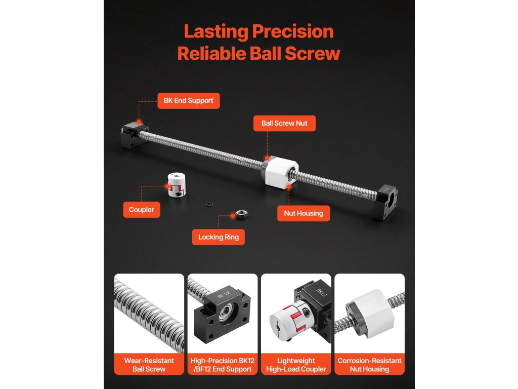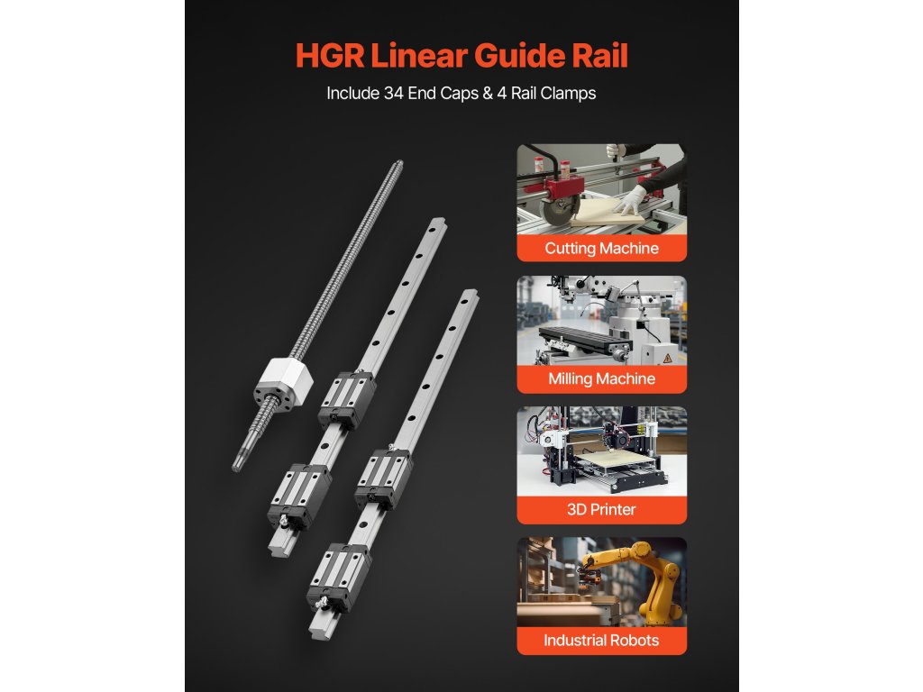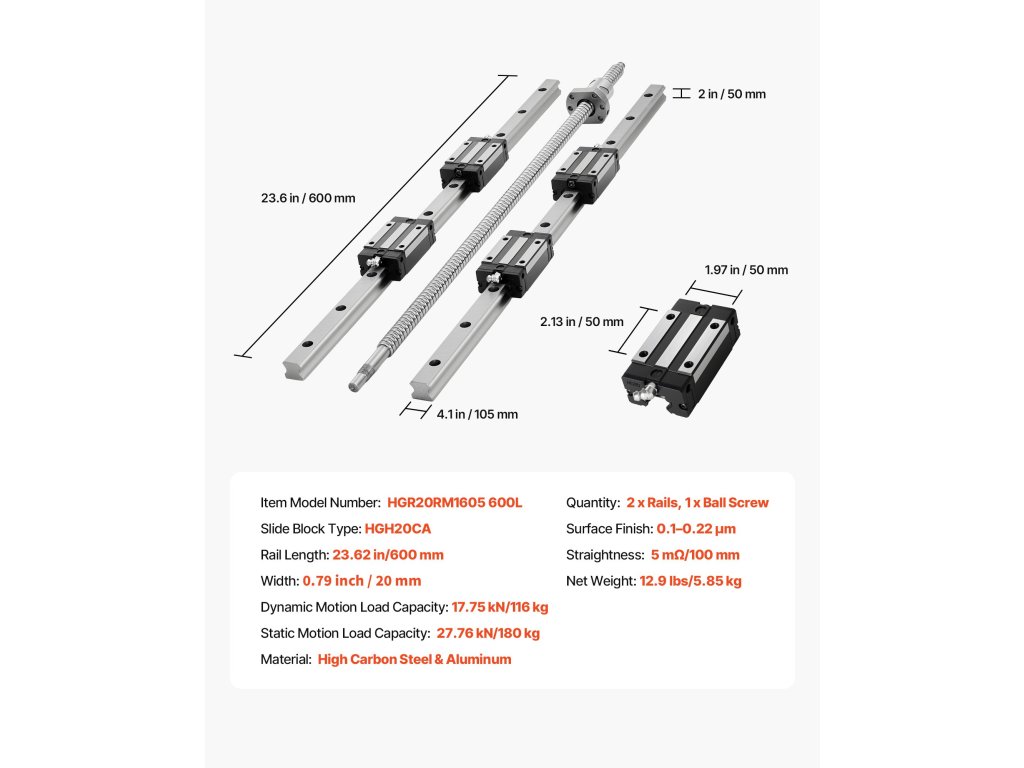 Tartalmaz két lineáris sínt, négy csúszó blokkot és egy golyóscsavart. A szénacél síneket precíziós rögzítőfuratokkal és furattávolsággal terveztük a csökkentett rezgés és a csendes lineáris mozgás biztosítása érdekében. Minden egyes ötvözött acélból készült csúszóblokk golyóscsapágyakkal van ellátva a sima, problémamentes mozgás érdekében.