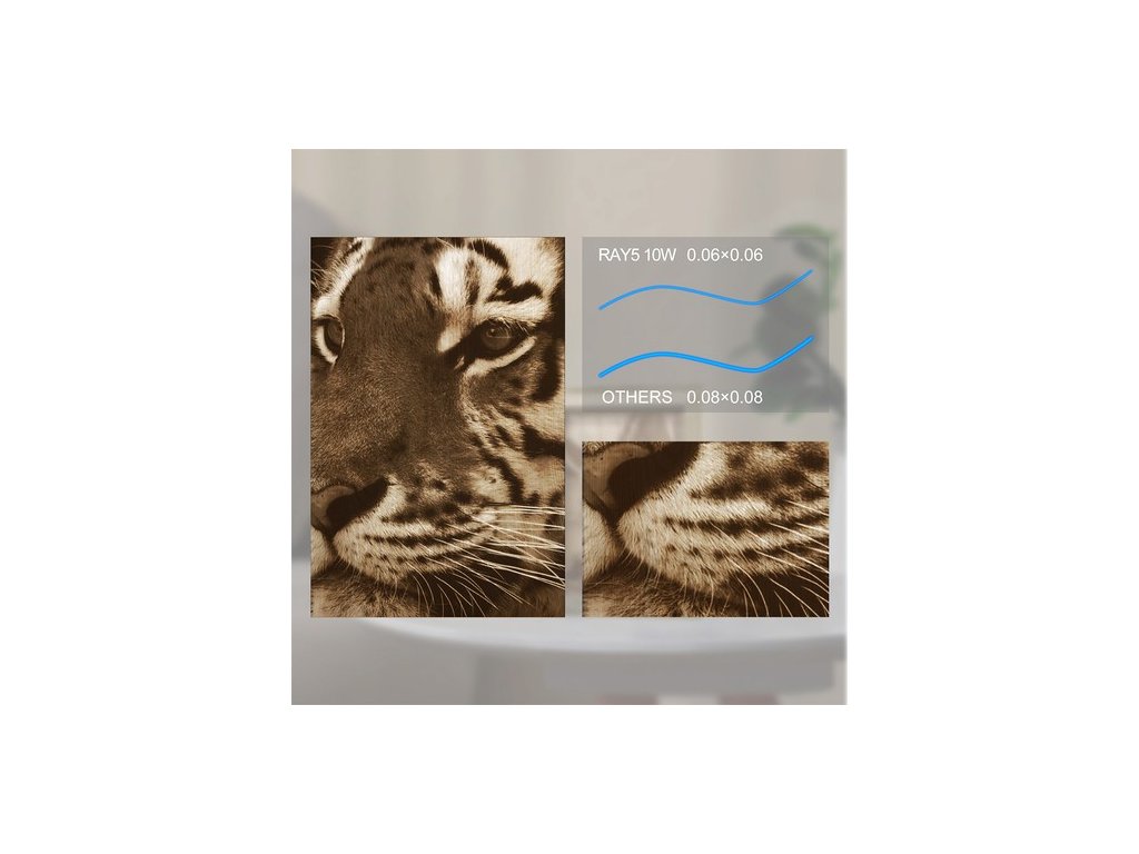 A kettős sugárzású technológiának köszönhetően a Ray5 10W erősebb lézer kimeneti teljesítményt biztosít, ami jobb vágási és gravírozási kapacitást tesz lehetővé. Képes 20 mm vastag fatáblák és 30 mm vastag akril vágására. Gravírozási mérete 400 x 400 mm, a gravírozási sebesség pedig 10000 mm/perc.