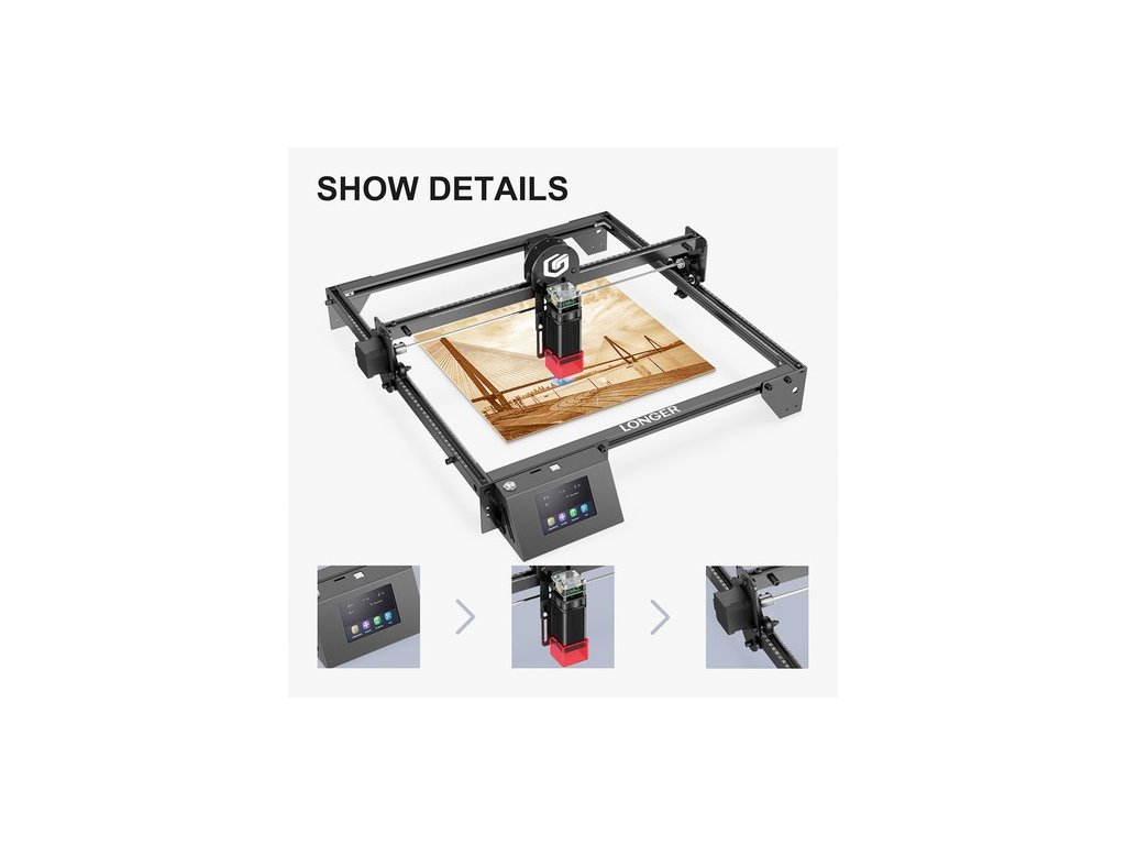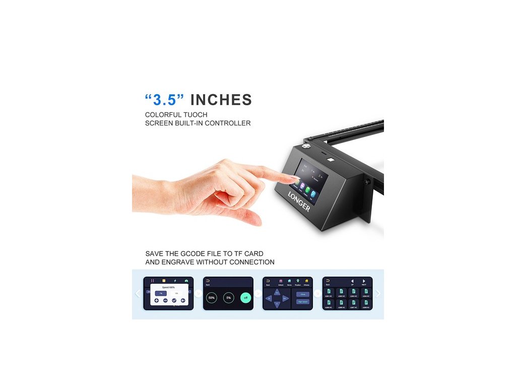 A 3,5 hüvelykes érintőképernyős kijelzővel ellátott Ray5 10w olyan új funkciókkal bővült, mint a többféle adatátviteli módszer és a többgépes vezérlés. Más lézergravírozókkal összehasonlítva akár több mint 1000 anyagot is képes gravírozni.