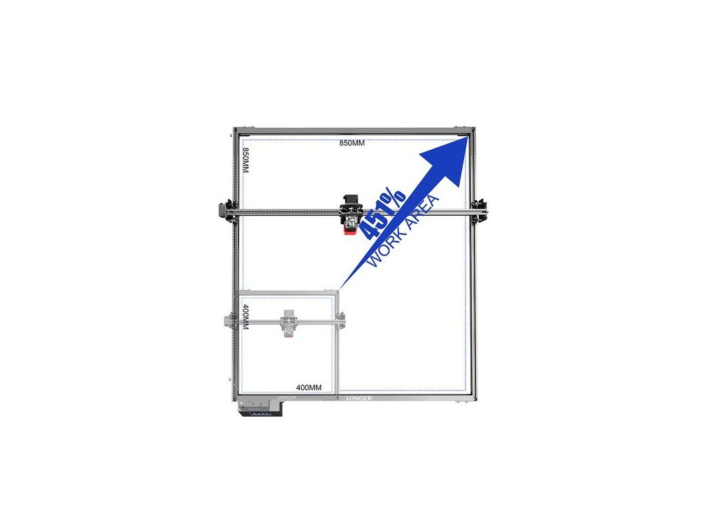A meghosszabbított tengelyek és kábelek szigorúan teszteltek, hogy ugyanazt a pontosságot és stabilitást tartsák fenn, mint a standard LONGER RAY5, így biztosítva a kivételes gravírozási és vágási minőséget.