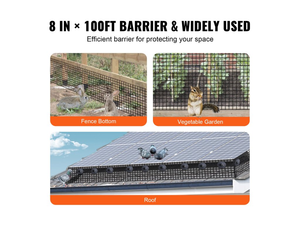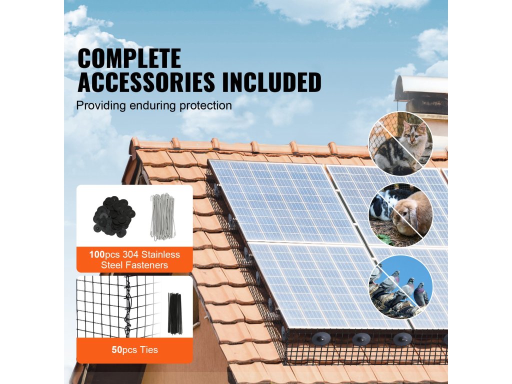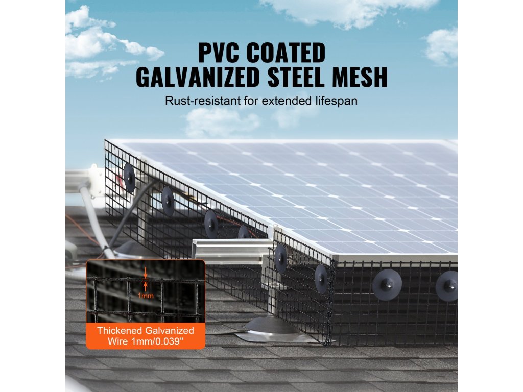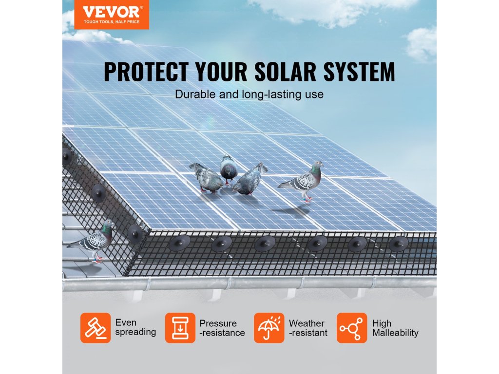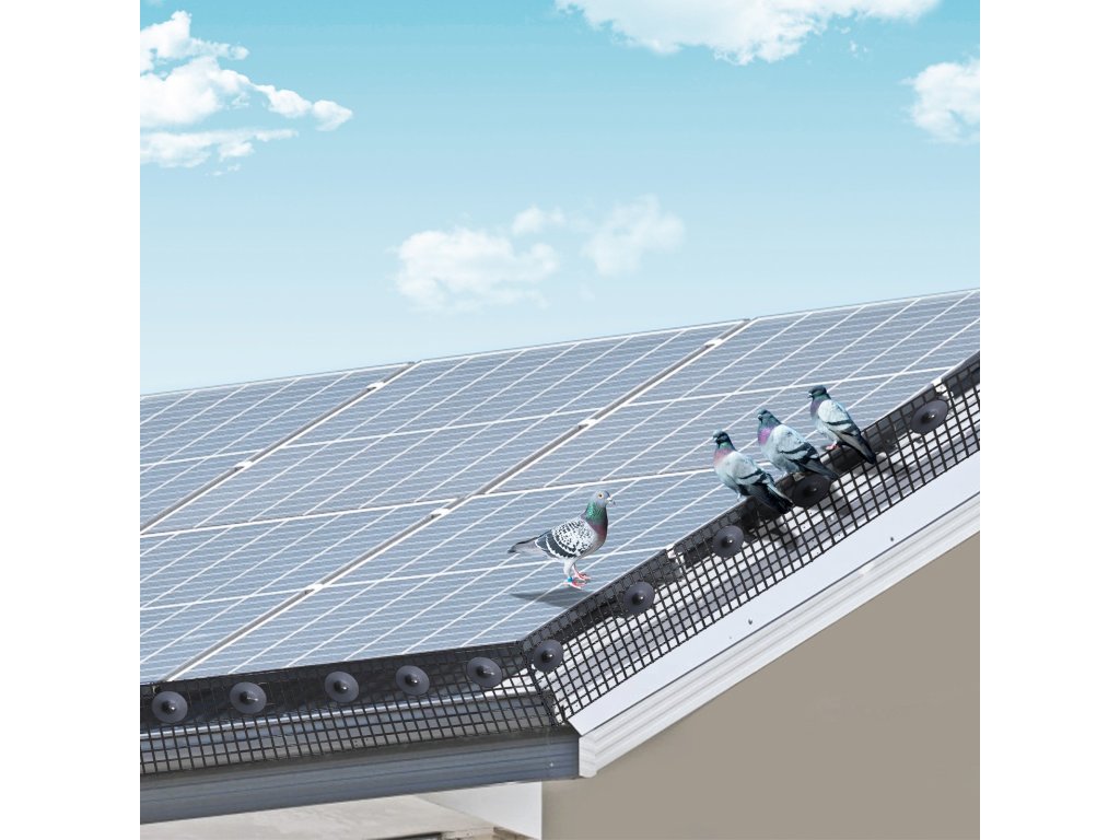 Ez a napelemvédő védi a napelemeket a madaraktól és más kisállatoktól, és számos helyen használható, például csőnyílásokban, kéményekben, kerítések alján és zöldségeskertekben.