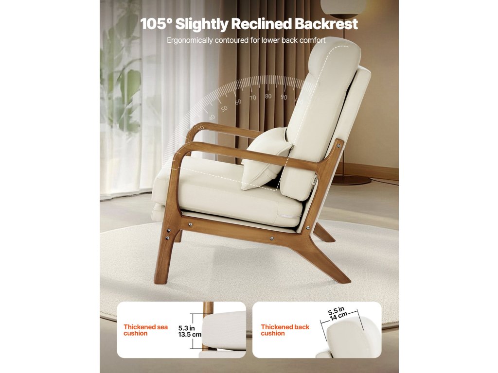 Ez a fából készült akcentusszék ötvözi a klasszikus, századközépkori modern stílust a kiváló minőségű tömörfa vázzal, amely garantálja az erőt és a tartósságot. A 105°-os háttámlaszög és a nagy sűrűségű habszivacs kivételes kényelmet biztosít, így ideális választás az otthoni terekbe.