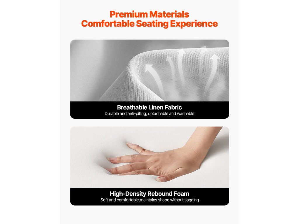 Ennek a középkori modern akcentusszéknek az ülése és háttámlája rendkívül tartós habbal van töltve, és tartós és repedésre hajlamos vászonszövettel borított. A szövet a könnyű tisztítás érdekében levehető.