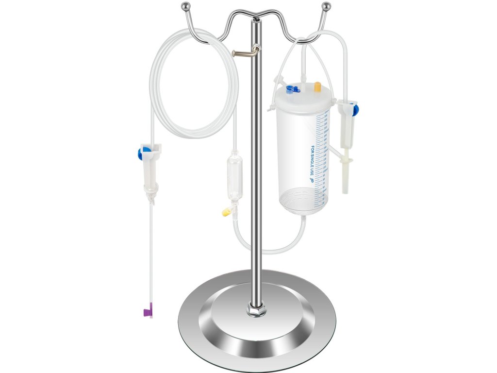 Professzionális intravénás infúziós készletként teljes tartozékokat tartalmaz: intravénás infúziós állvány, folyadéktartály, fecskendő stb. Hordozótáskába csomagolva.