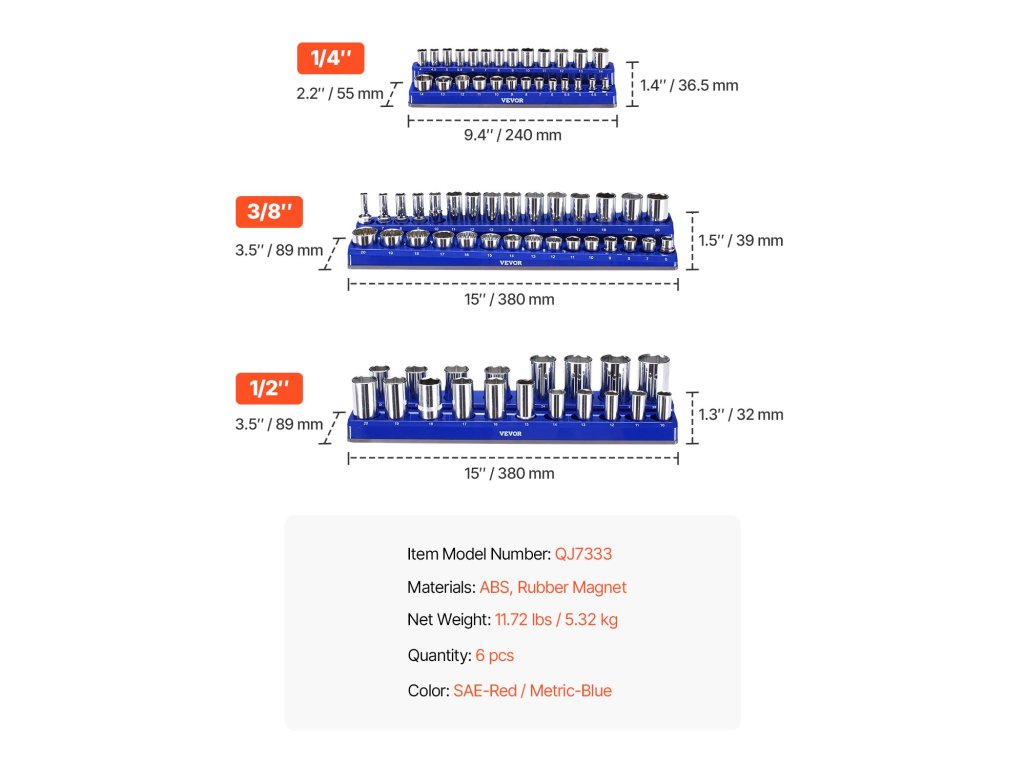 VEVOR Mágneses foglalat szervező 6db metrikus és SAE foglalathoz