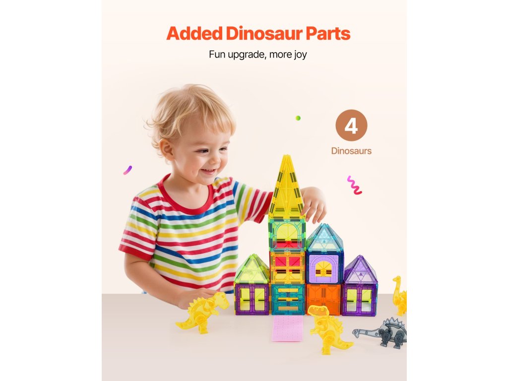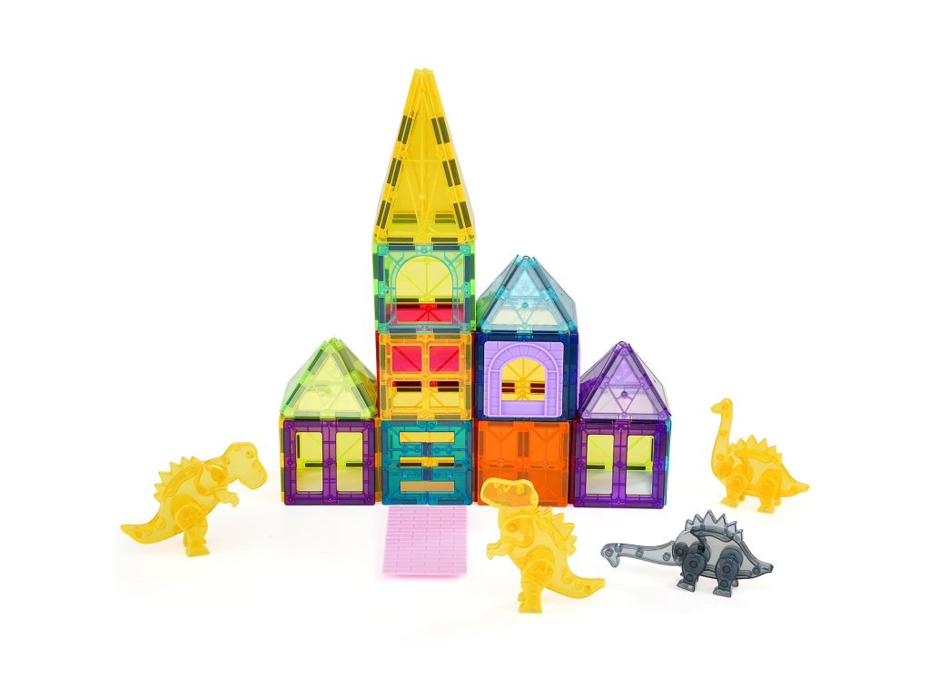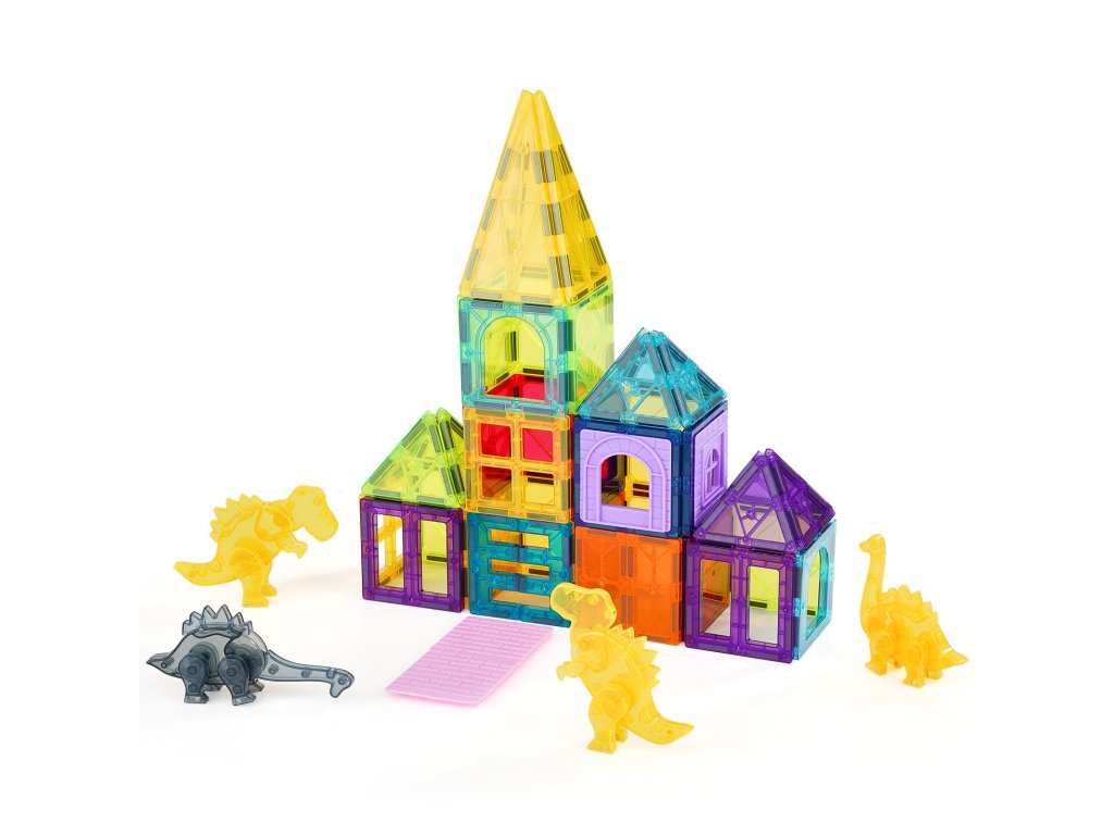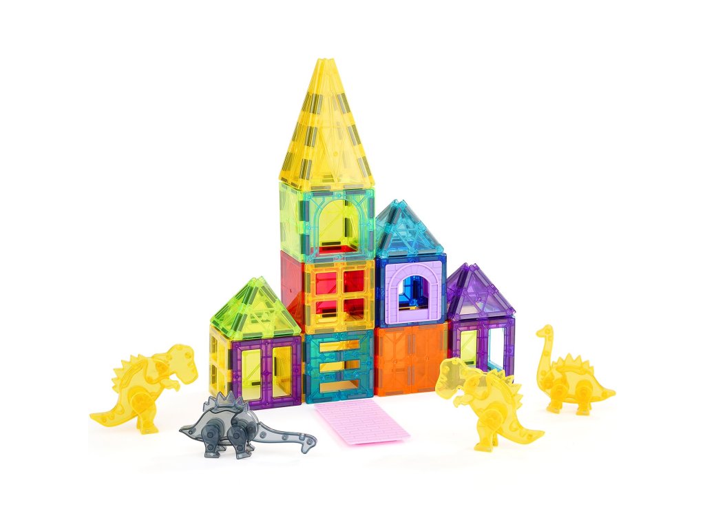 Mágneses építőkockák 56 darabos, 4 dinoszaurusszal, oktatókészlet 3+