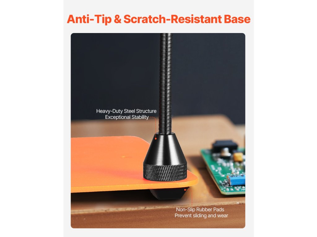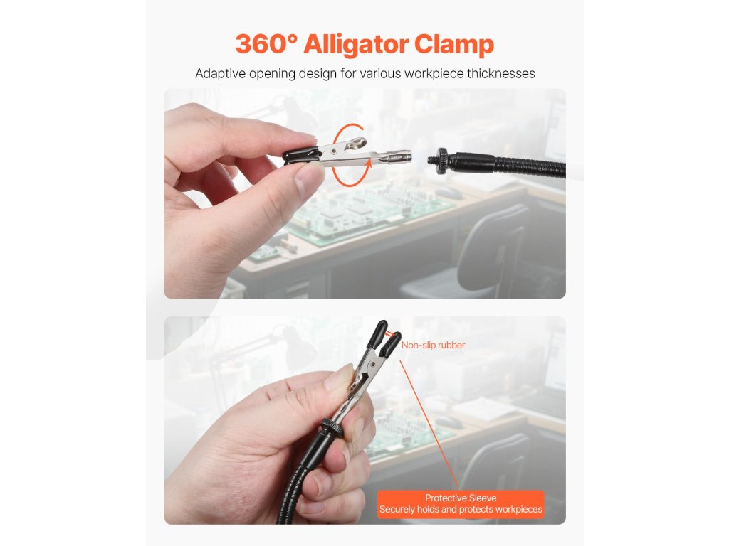 Forrasztást segítő karjaink 4 rugalmas karral rendelkeznek, amelyek 360°-ban szabadon hajlíthatók, lehetővé téve a szög és a magasság könnyű beállítását az alkatrészek pontos elhelyezéséhez. Ideálisak bármilyen méretű projektekhez, teljesen felszabadítják a kezét, és hatékonyabbá teszik a munkát.