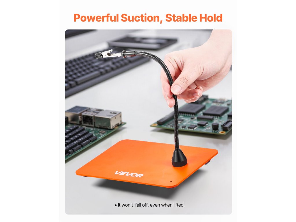 A lúdnyakú kar alap erős mágneses vonzerővel van ellátva, hogy biztonságosan rögzítse a munkafelülethez. Így ez a segédkarokkal ellátott szerszám megakadályozza a munka közbeni elmozdulást, csökkenti a szerszám elcsúszásának vagy felborulásának kockázatát, és gyors beállítást tesz lehetővé, ezáltal növeli a munka hatékonyságát.