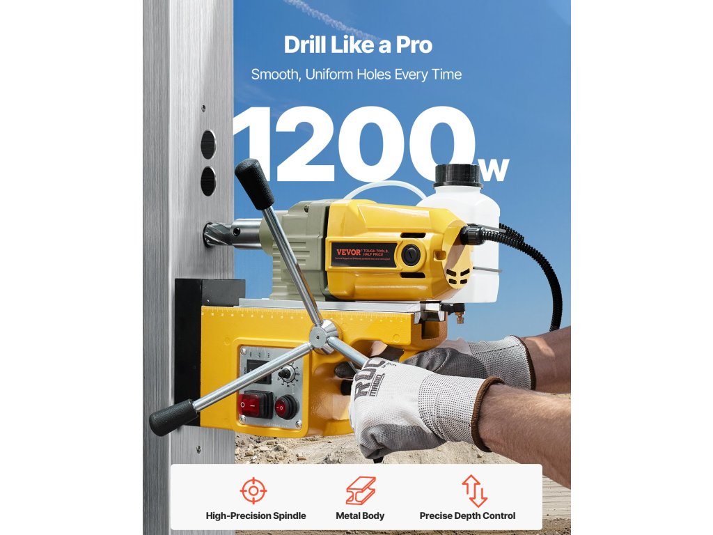Ez a mágneses fúrógép biztonságosan tapad az acél- vagy vasfelületekre, és pontos, marásmentes furatokat készít. A 2 fúrófejjel számos fúrási feladatot képes megoldani. Prémium ötvözetből készült, és ideális otthoni összeszereléshez, ipari felhasználásra és acél megmunkálására.