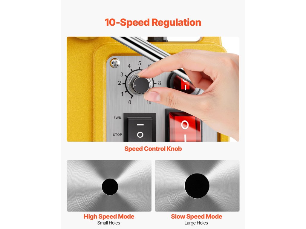 Pontosan állítsa be a sebességet a fúrási átmérő alapján. Kisebb furatok esetén kapcsoljon magasabb fordulatszámra a hatékony fúrás és a sima furatfalak elérése érdekében. Nagyobb lyukak esetén csökkentse a sebességet, hogy elkerülje a fúrófej sérülését vagy a túlzott sebesség okozta elállást, ami nagymértékben javítja a fúrási pontosságot.