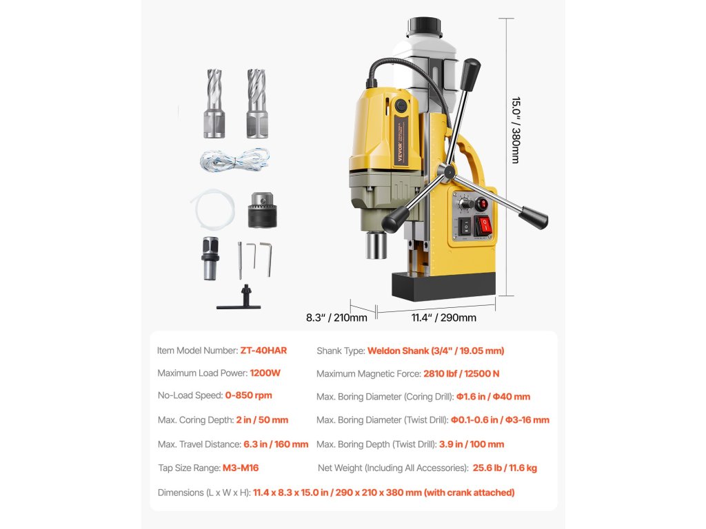 Ez a mágneses fúrógép több koronás fúrószárral, professzionális forgótekerccsel és előre/vissza mozgási funkciókkal rendelkezik, és támogatja a körkörös vágási, fúrási és kalapácsfúrási feladatokat. Minden fúrási igényét kielégíti - a kisebb barkácsprojektektől a nagyipari alkalmazásokig.