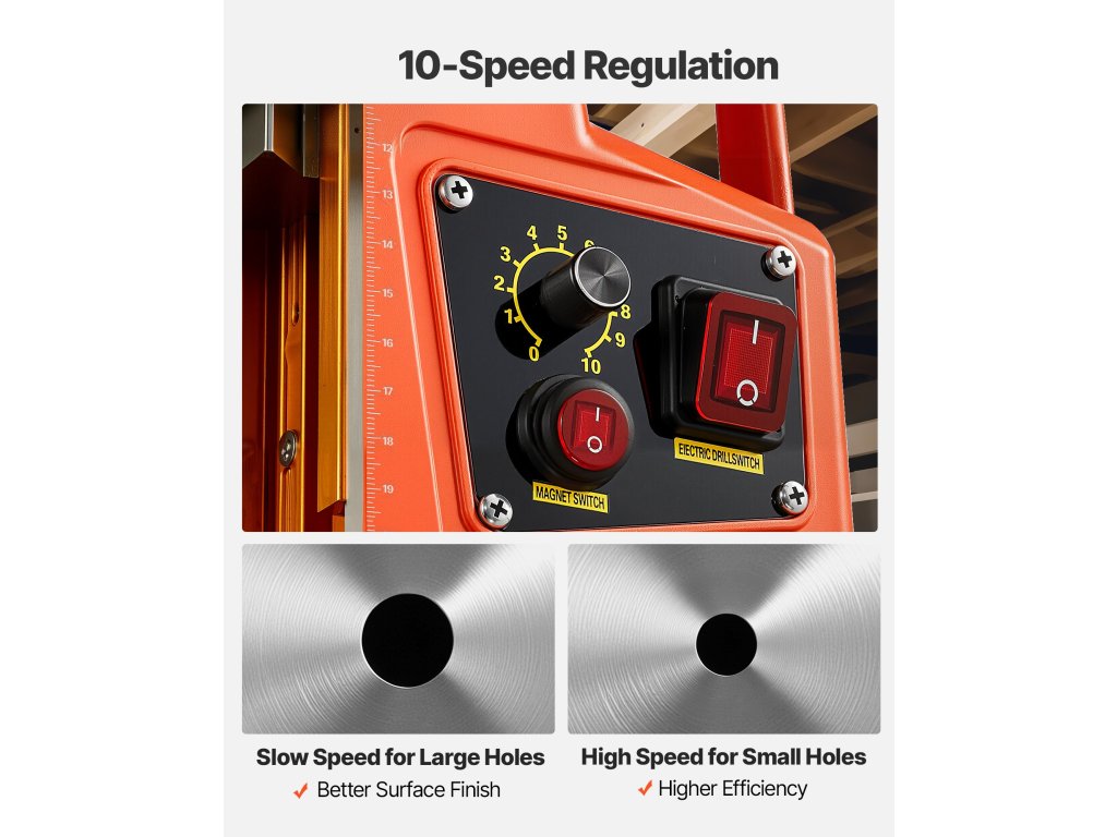 Ez az 1350 W-os mágneses fúrógép gyors és stabil fúrást biztosít különböző acélfajtákban. A 2810 lbf mágneses erő szilárdan tartja a pontos, sodródásmentes teljesítmény érdekében. Állítható sebességbeállításokkal rendelkezik. A hatékonyság és a kényelem szem előtt tartásával tervezett szerszám egyszerűvé és professzionálissá teszi a fúrást.