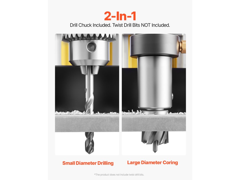 Mágneses fúrógépünk professzionális csavarfúrótokmányt tartalmaz, amely lehetővé teszi, hogy minden fúrási igényét egyetlen vásárlással megoldja. A kis lyukak csigafúróval történő fúrásától a nagy lyukak gyűrűsmaróval történő létrehozásáig minden lehetséges alkalmazást lefed az Ön számára.