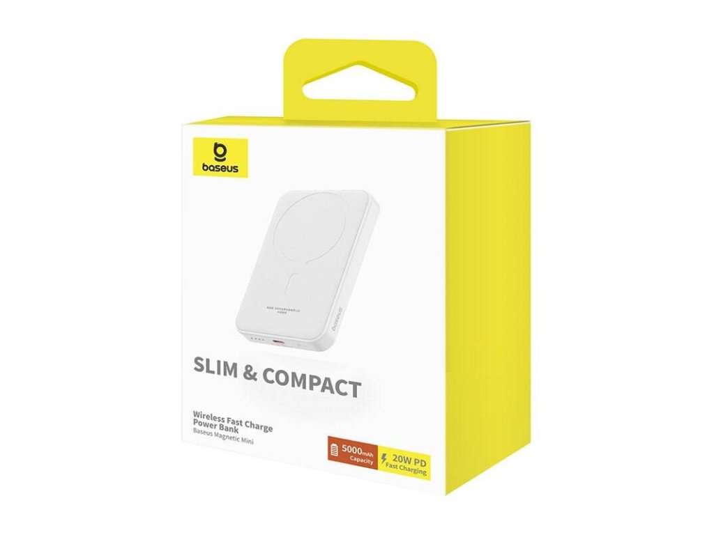 Mágneses mini power bank Baseus 5000mAh 20W (fehér)